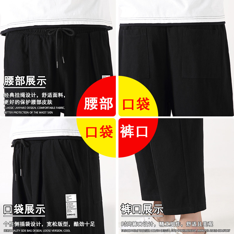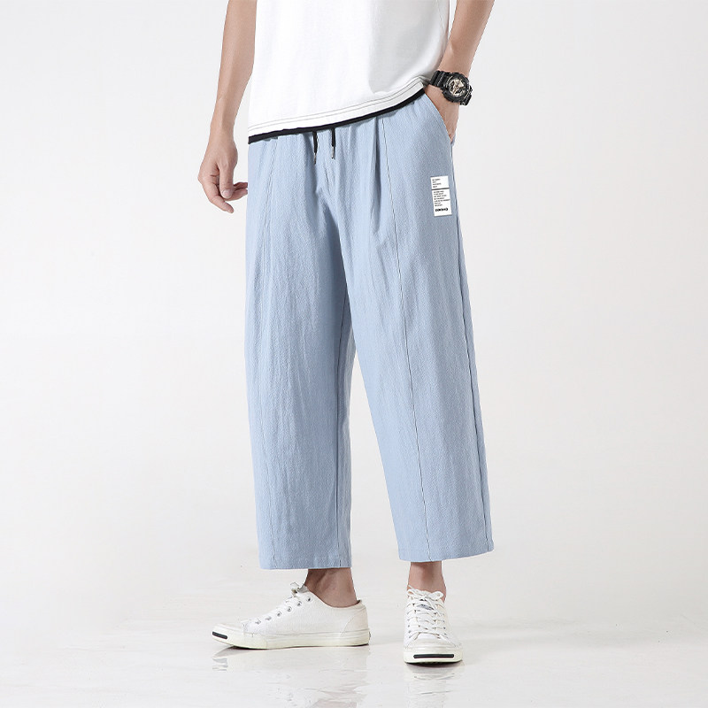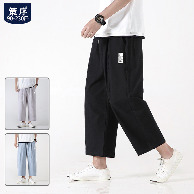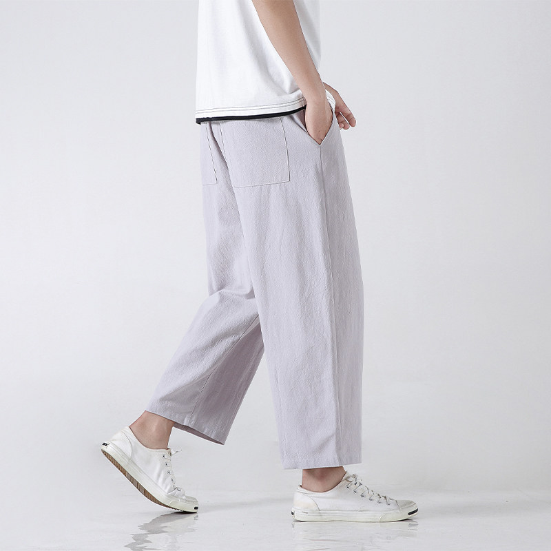 Летние тонкие штаны, из хлопка и льна, оверсайз, свободный прямой крой