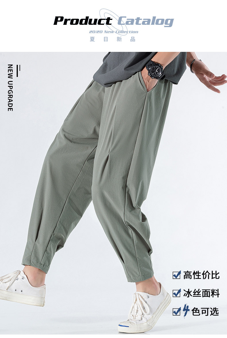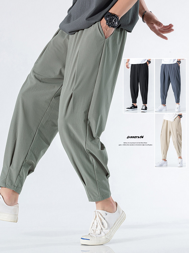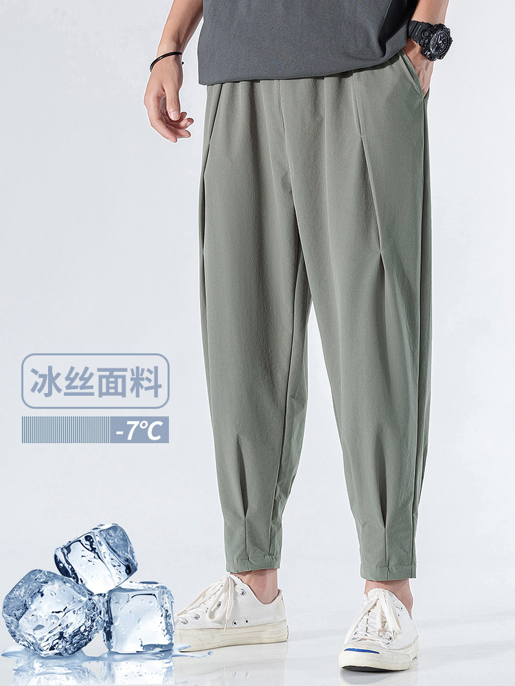 Летние тонкие трендовые спортивные шелковые ультратонкие штаны для отдыха, в корейском стиле, свободный крой