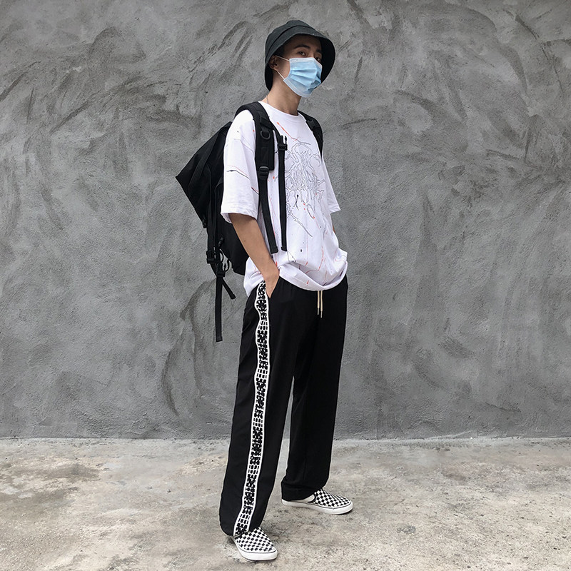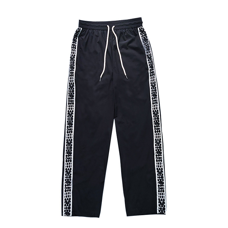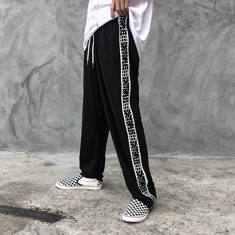 Шелковые летние тонкие штаны в стиле хип-хоп, оверсайз, на шнурках, свободный прямой крой