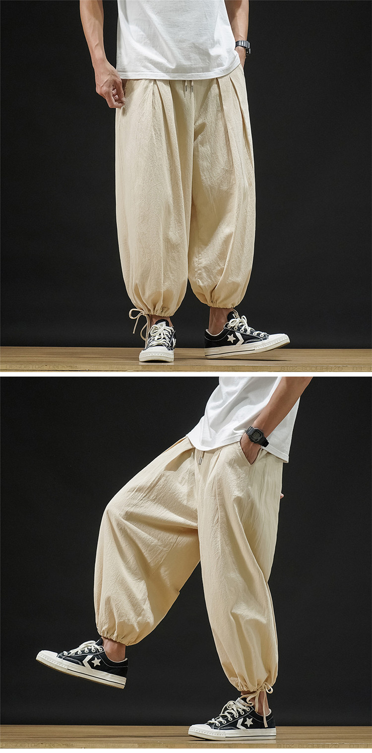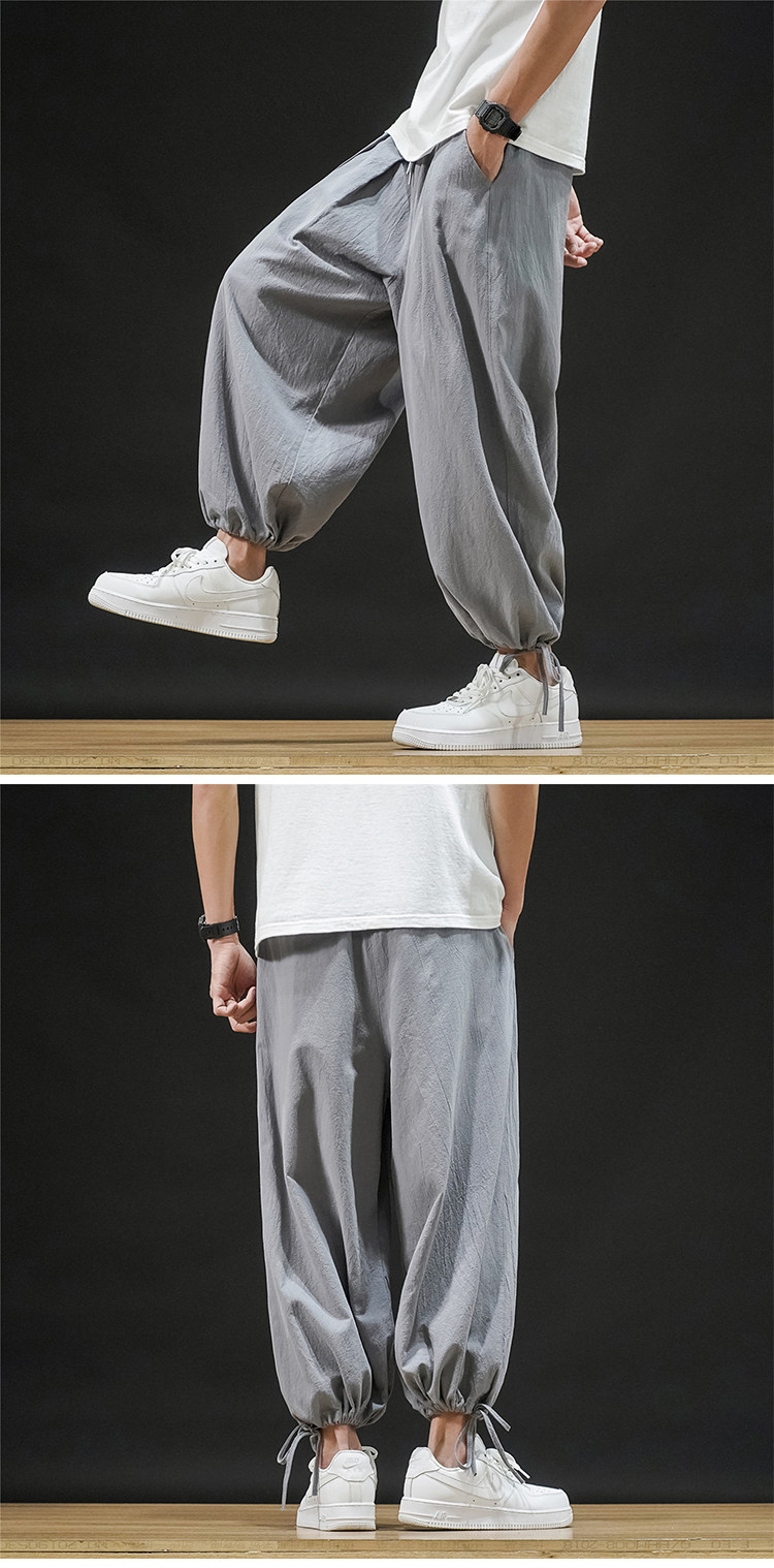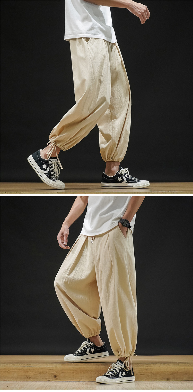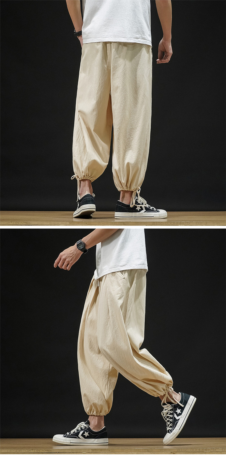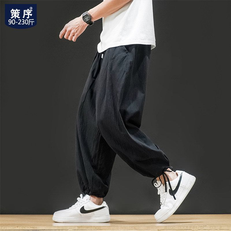 Штаны, из хлопка и льна, большой размер, оверсайз, на шнурках