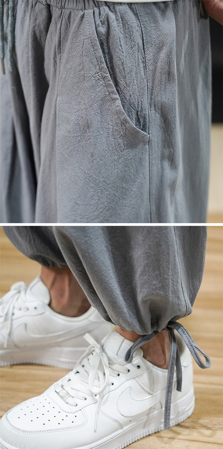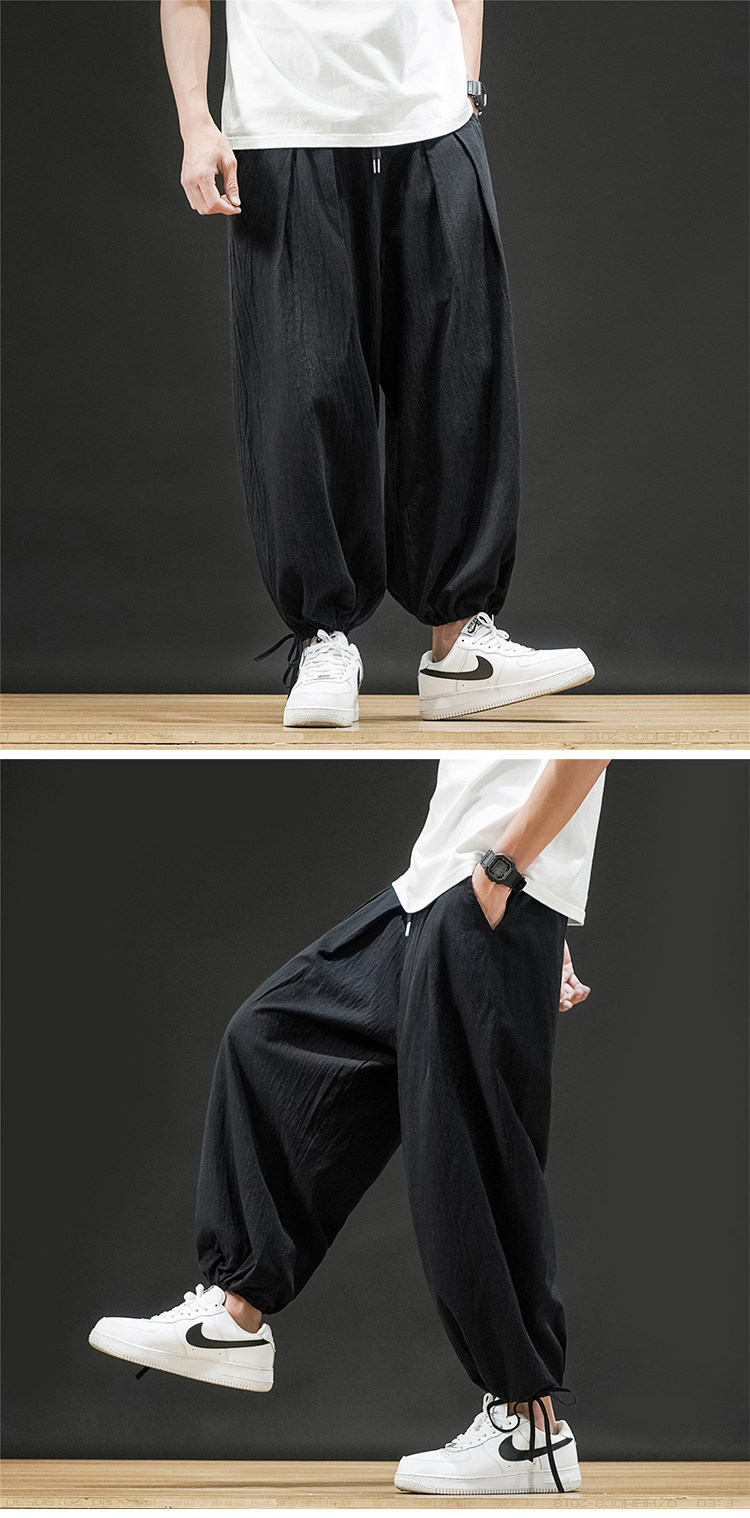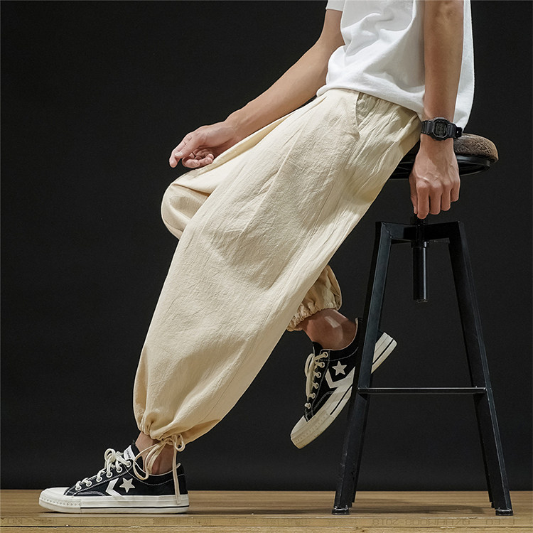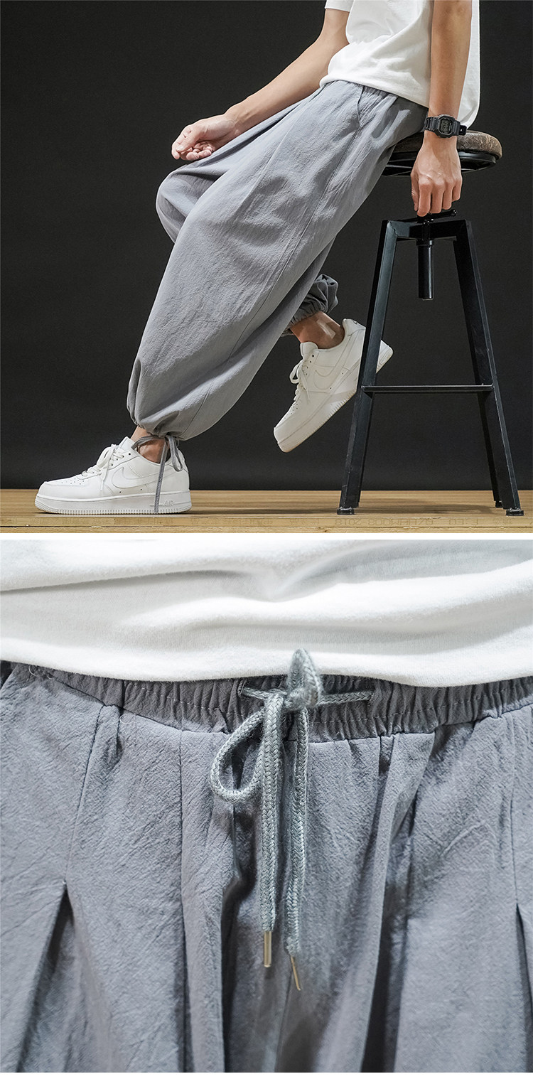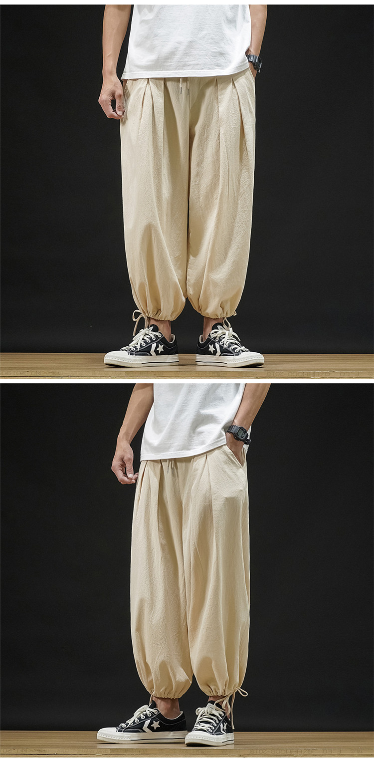Штаны, из хлопка и льна, большой размер, оверсайз, на шнурках