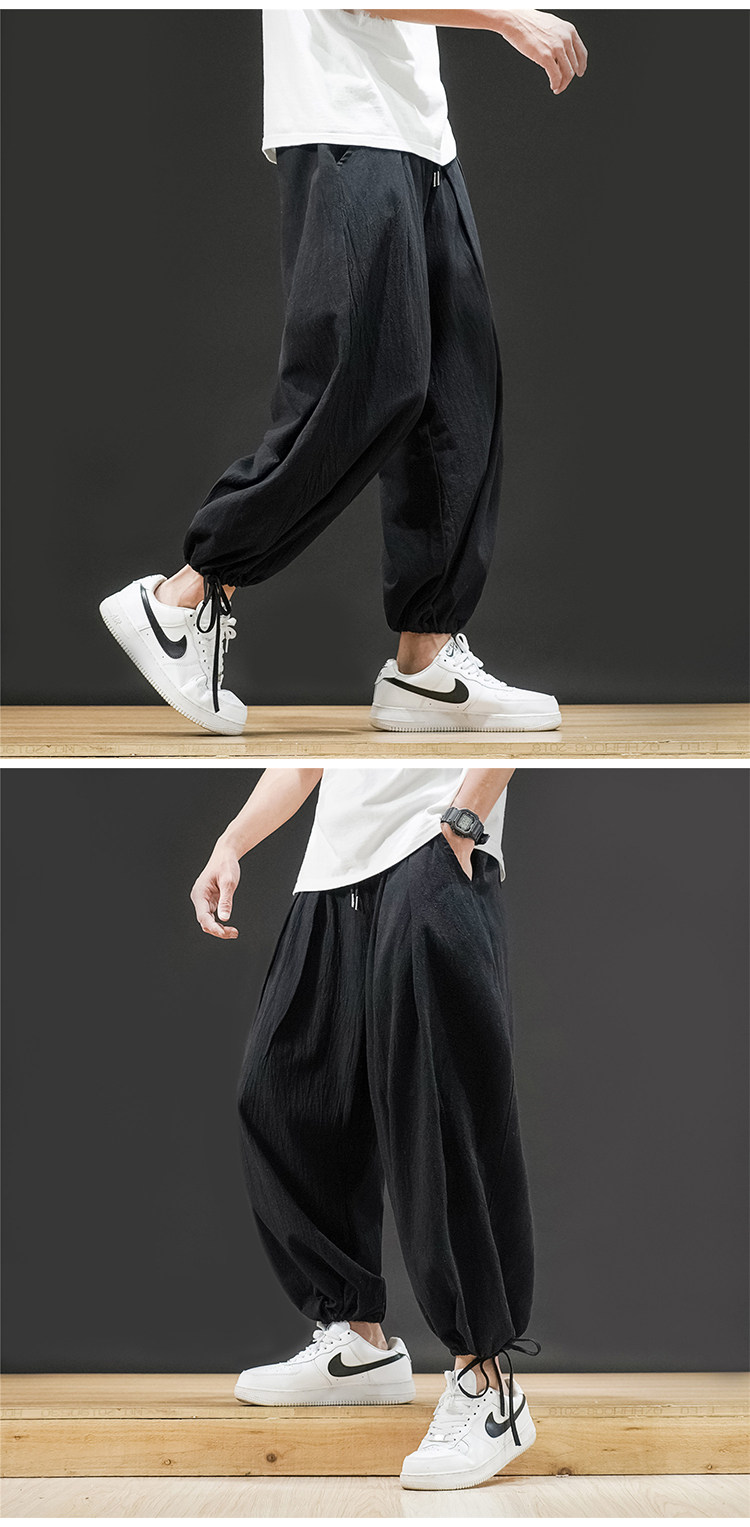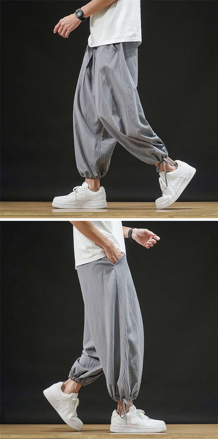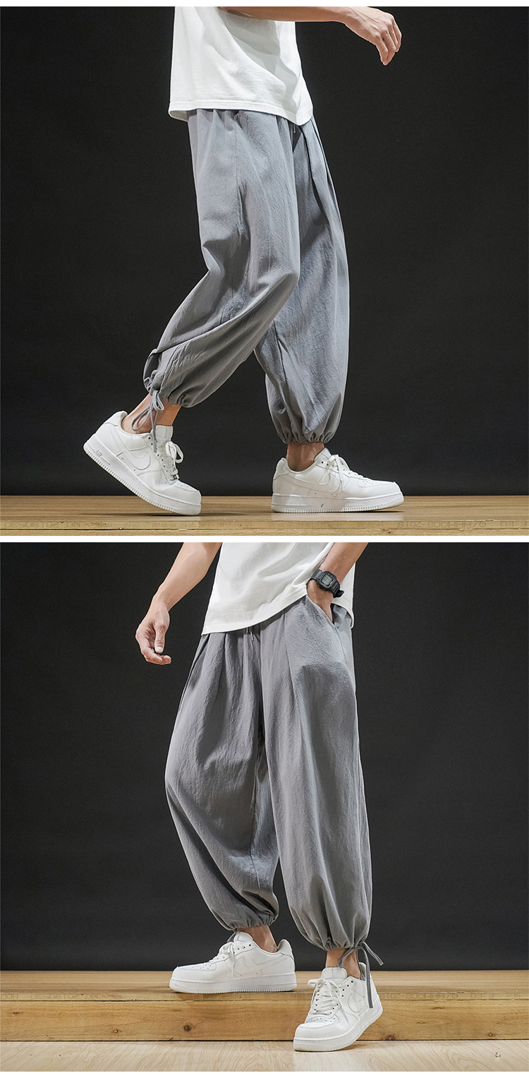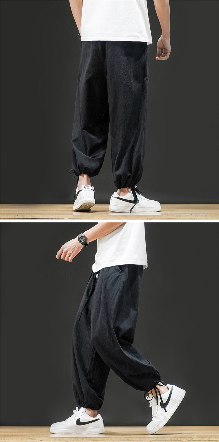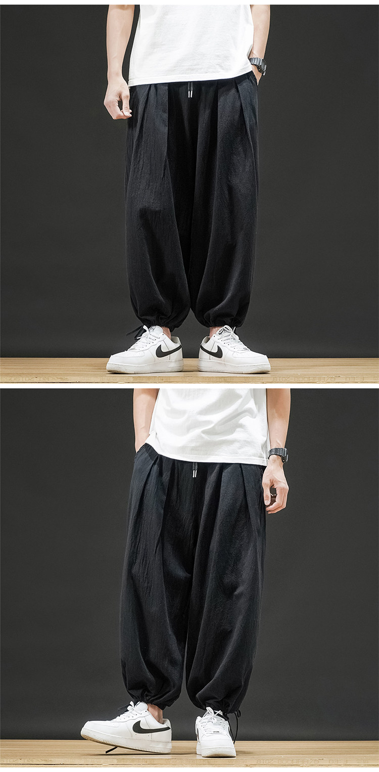Штаны, из хлопка и льна, большой размер, оверсайз, на шнурках