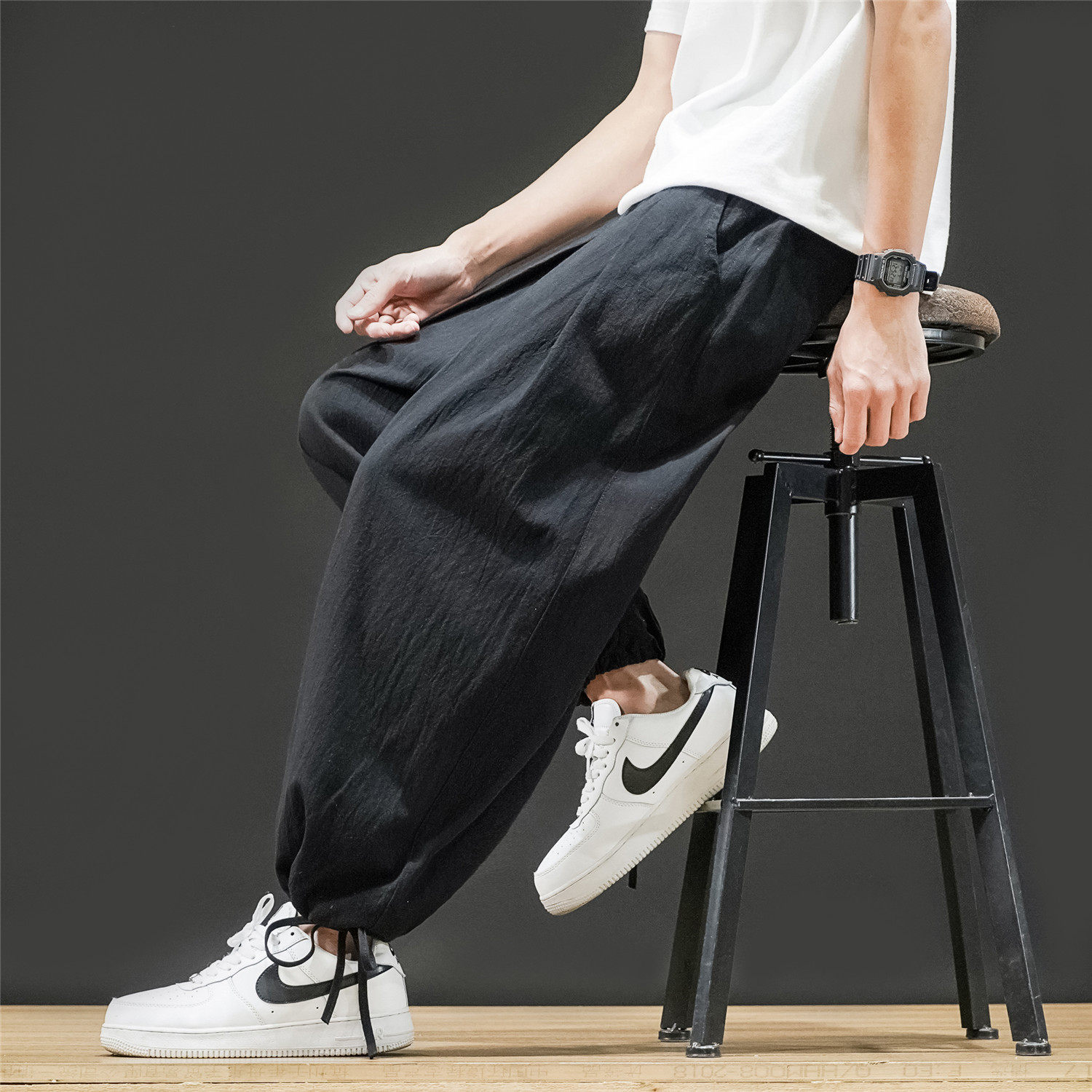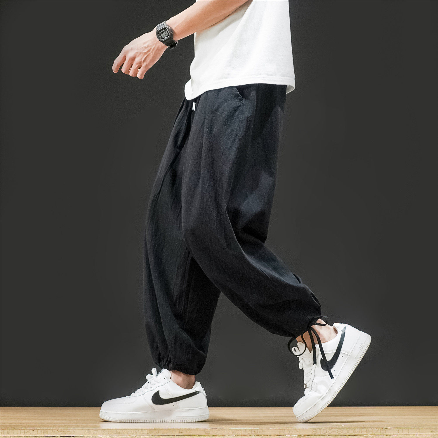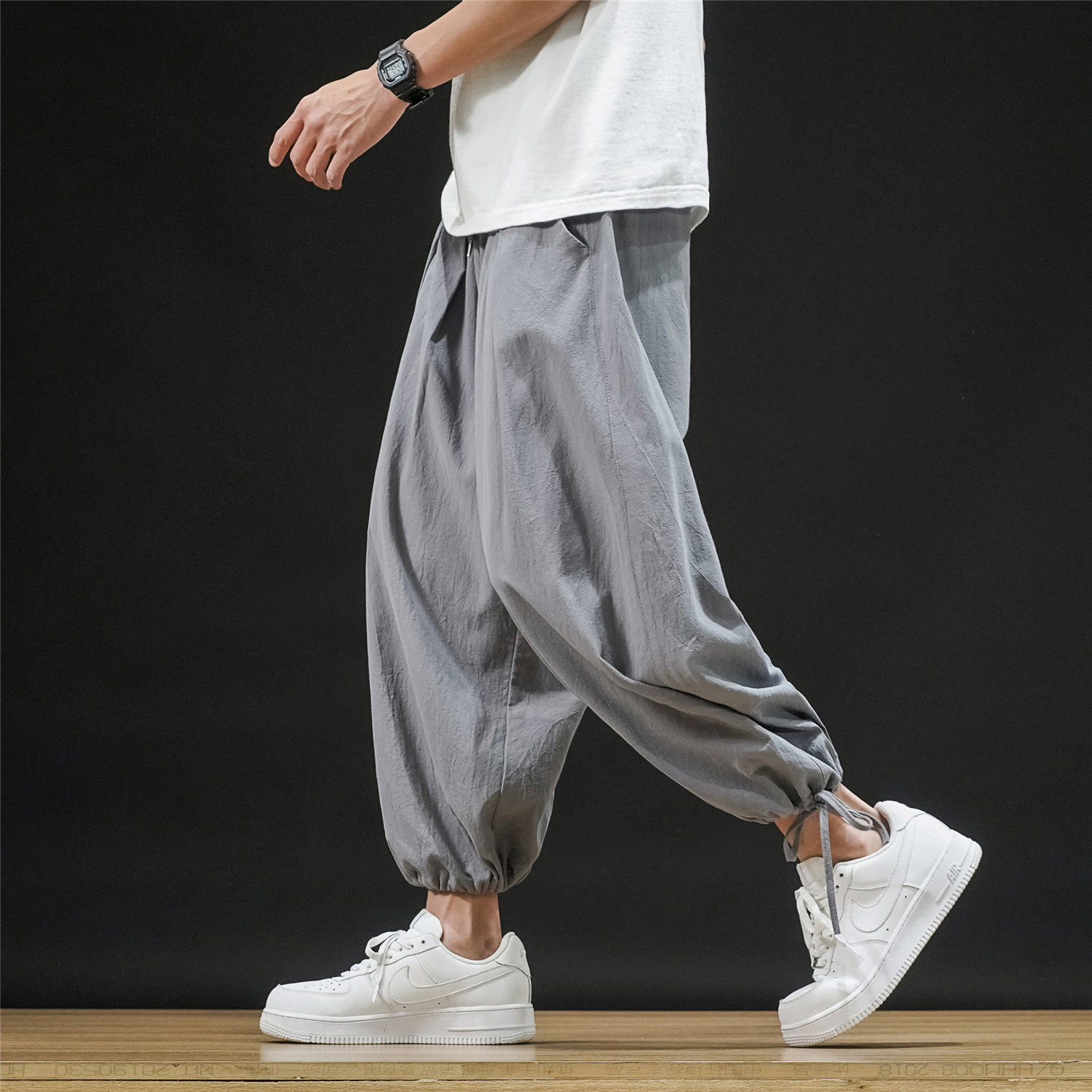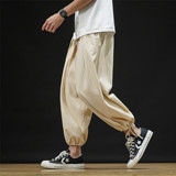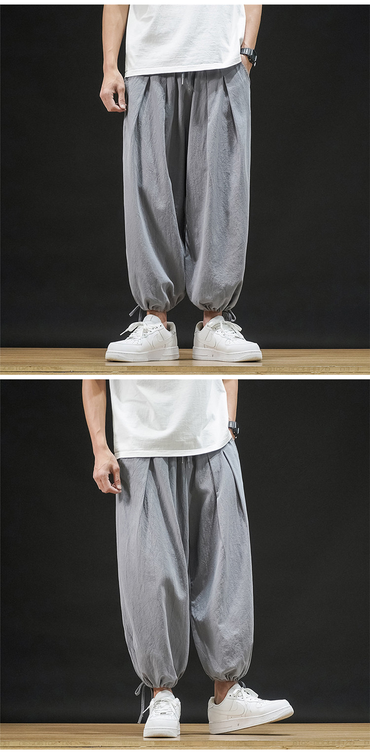 Штаны, из хлопка и льна, большой размер, оверсайз, на шнурках
