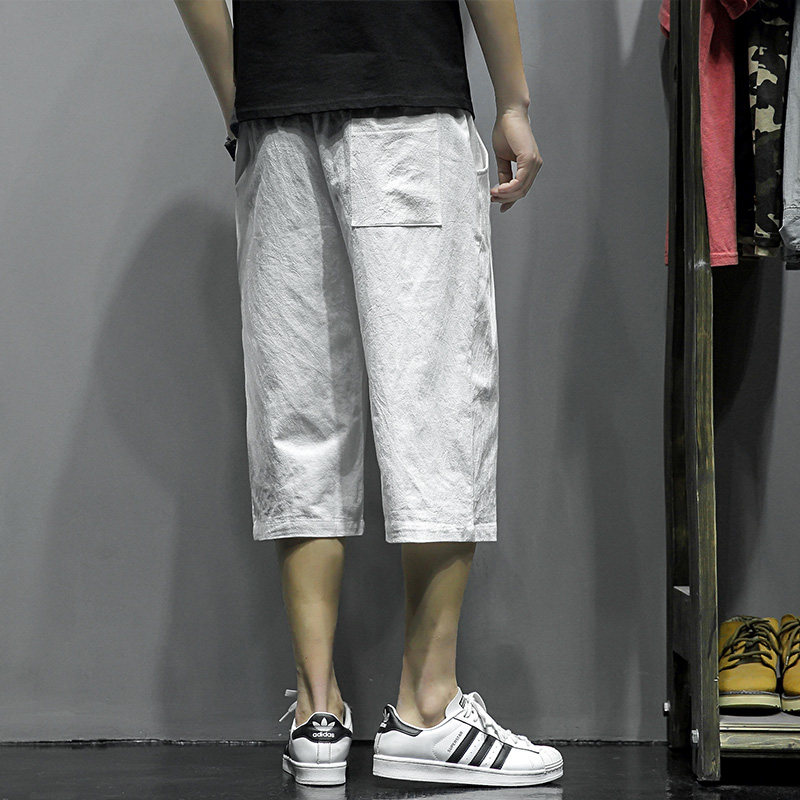 Мужские летние штаны, шорты, из хлопка и льна, большой размер, свободный прямой крой