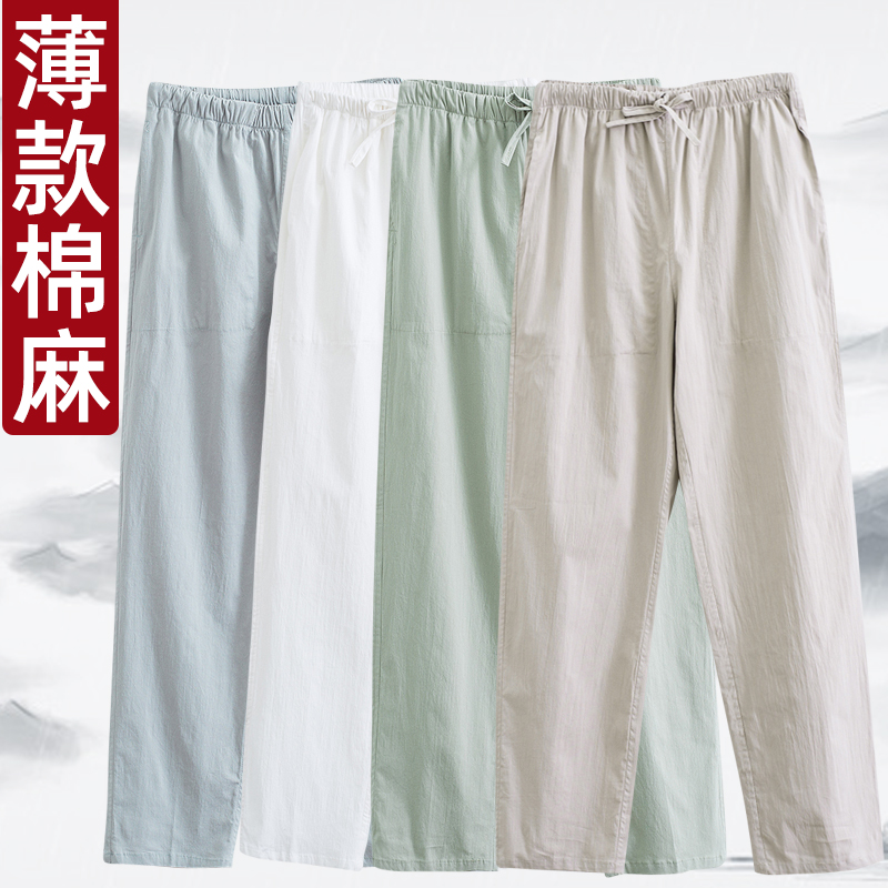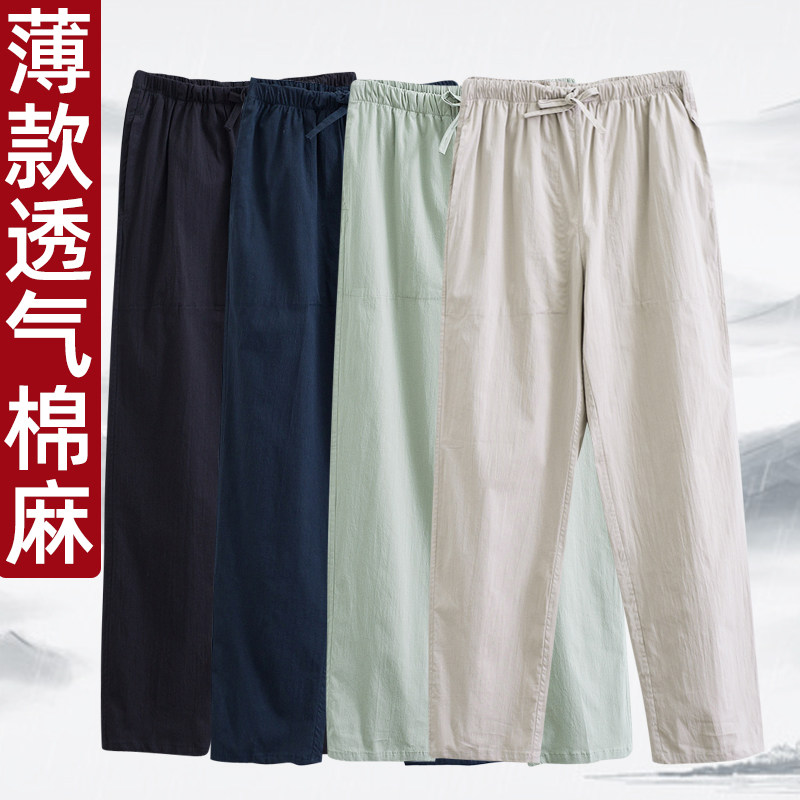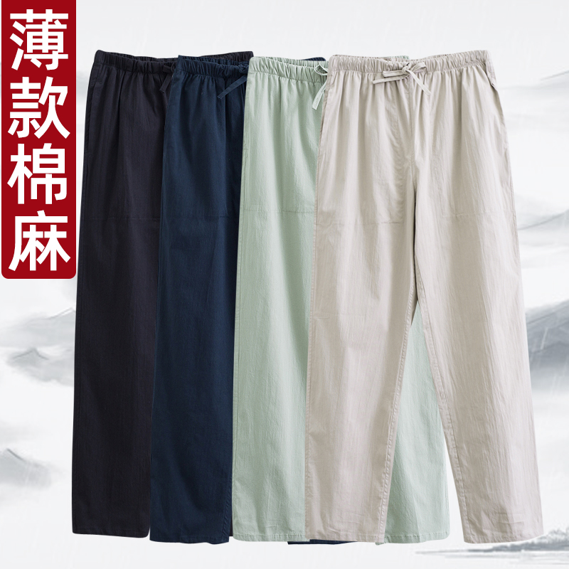 Летние тонкие универсальные комфортные дышащие повседневные брюки, китайский стиль, свободный прямой крой, эластичная талия