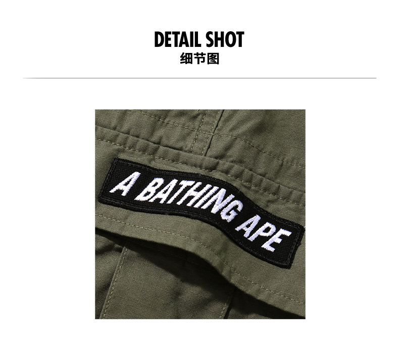 BAPE Мужские весенне-летние однотонные простые повседневные рабочие брюки с большим карманом и вышивкой буквами 152014E