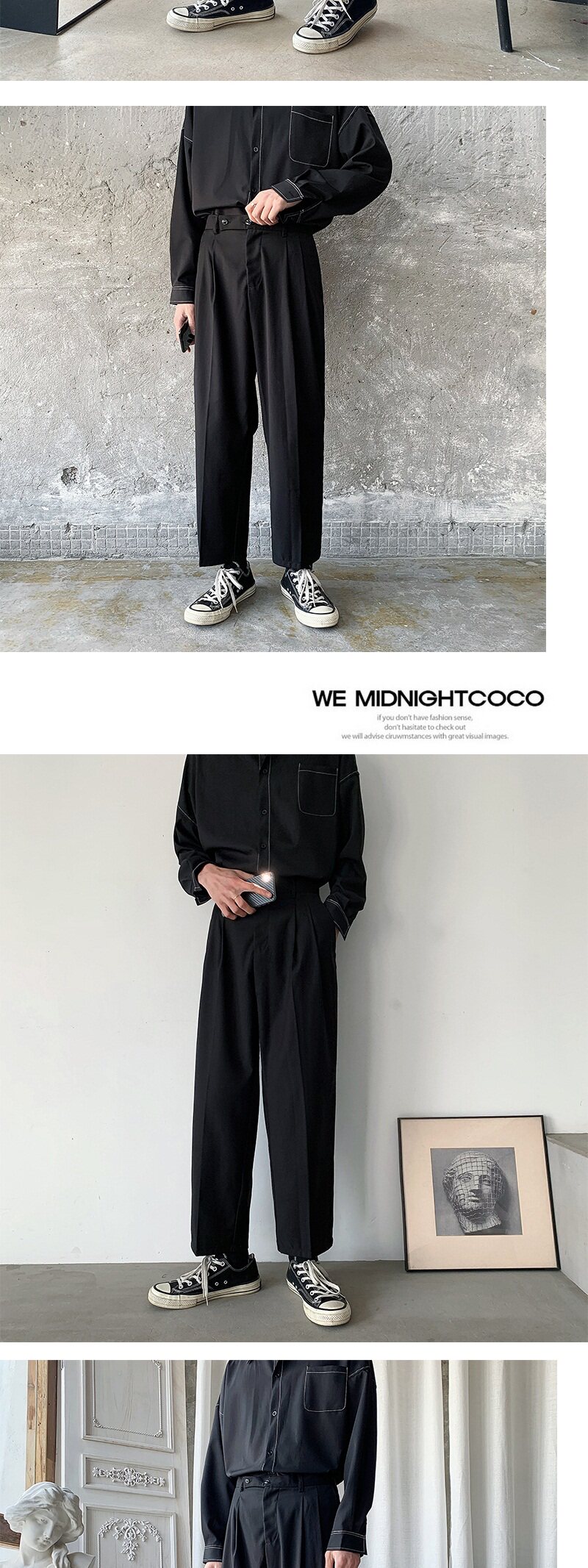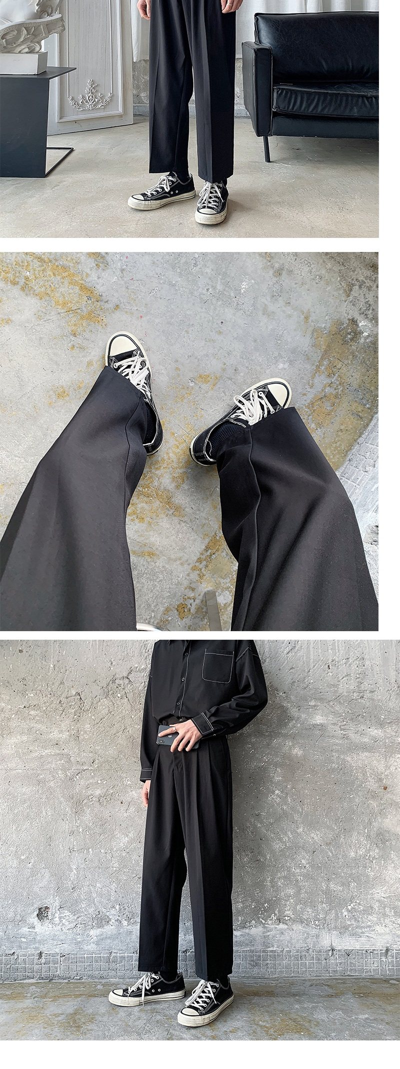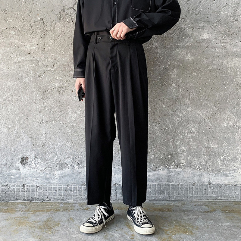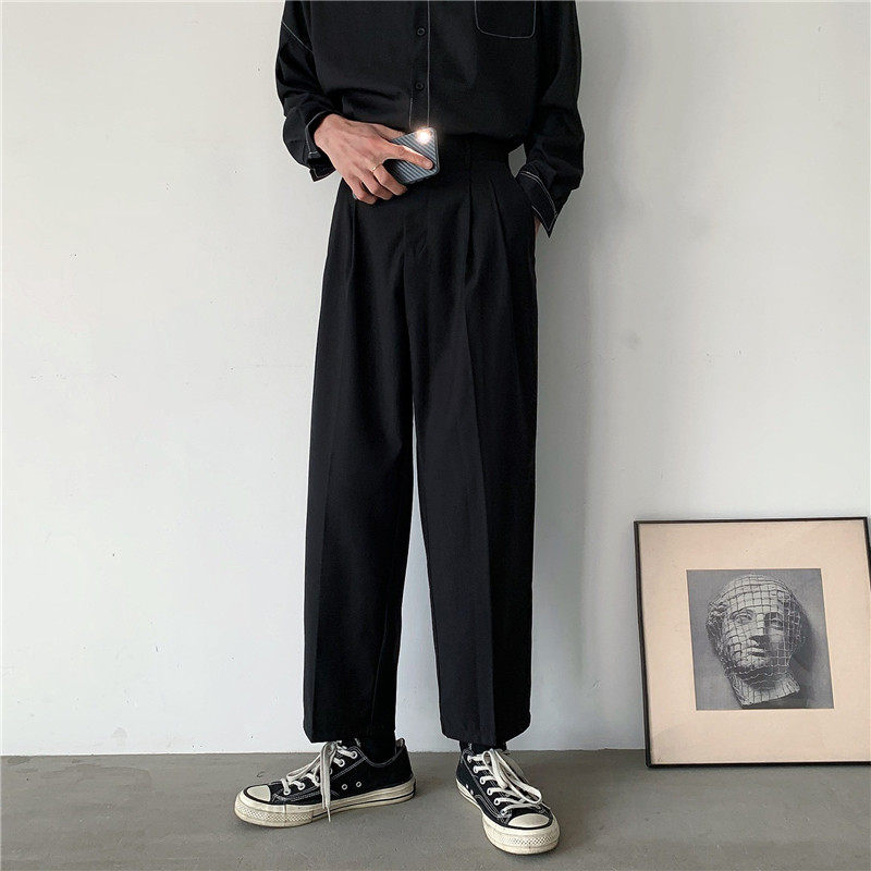 Мужские летние тонкие черные трендовые штаны, в корейском стиле, свободный прямой крой