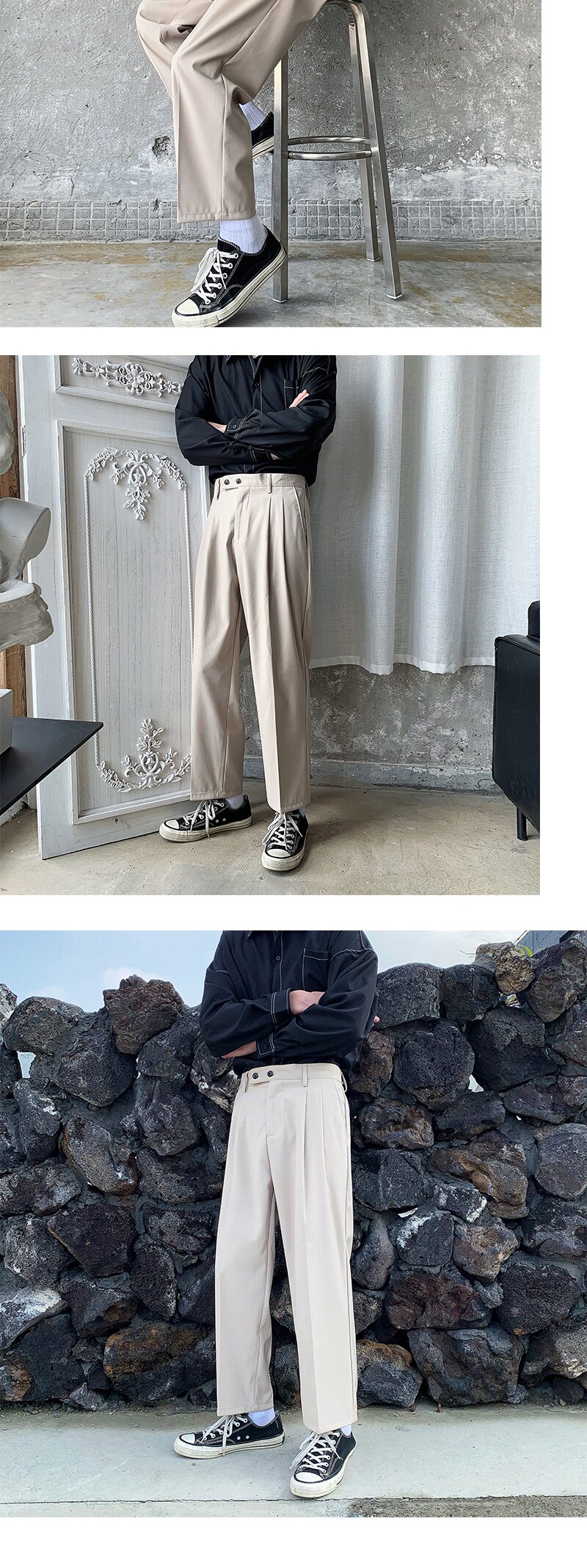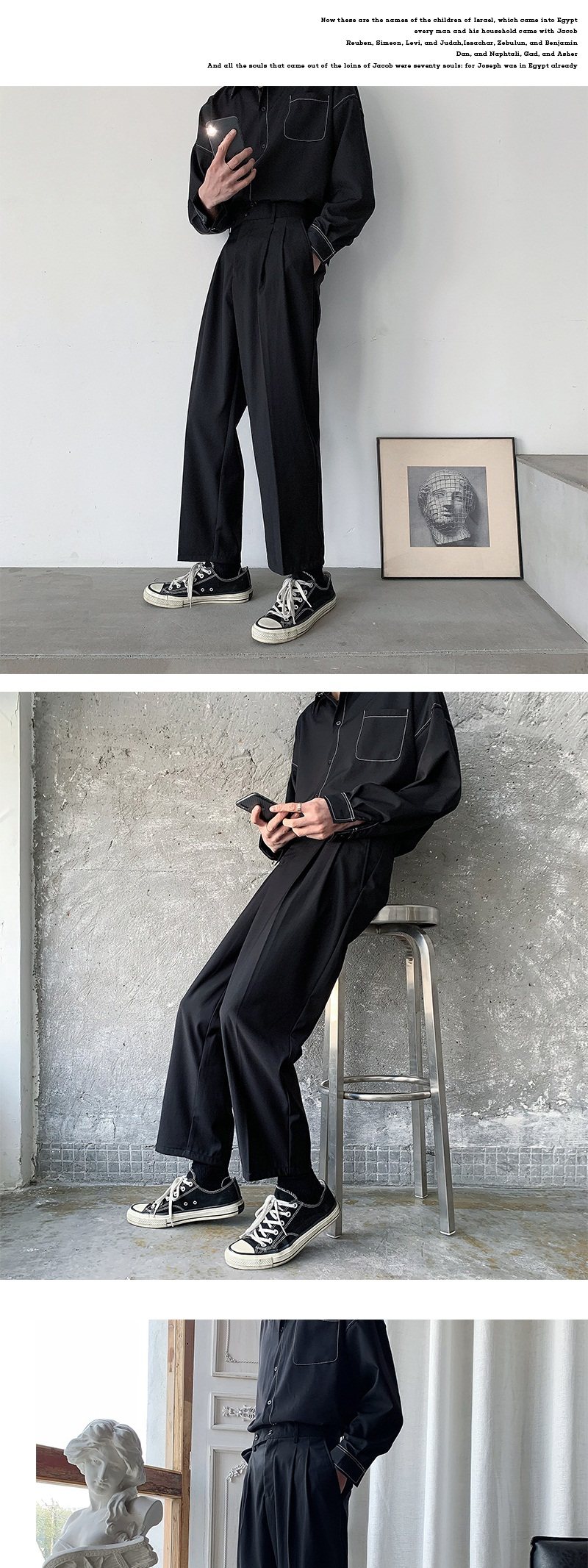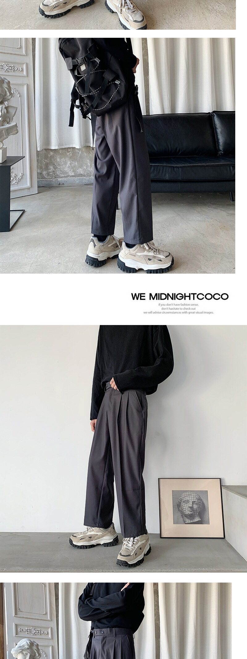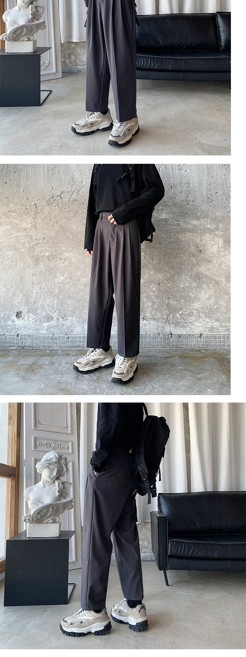 Мужские летние тонкие черные трендовые штаны, в корейском стиле, свободный прямой крой