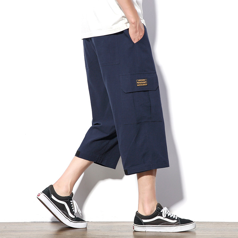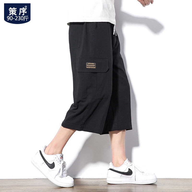 Мужские летние японские трендовые штаны на липучке, оверсайз, большой размер