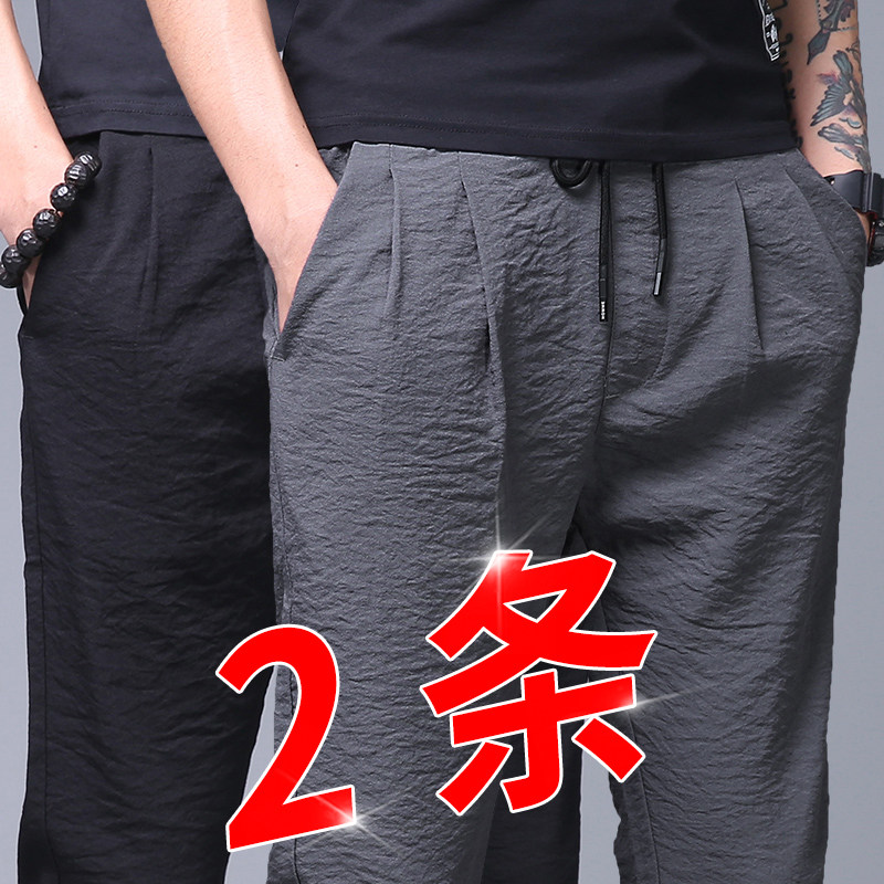 Мужские шелковые летние ультратонкие тонкие спортивные штаны, оверсайз, свободный прямой крой