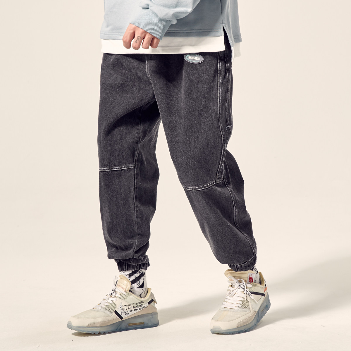 Штаны, джинсы для школьников, осенние, в корейском стиле, на шнурках