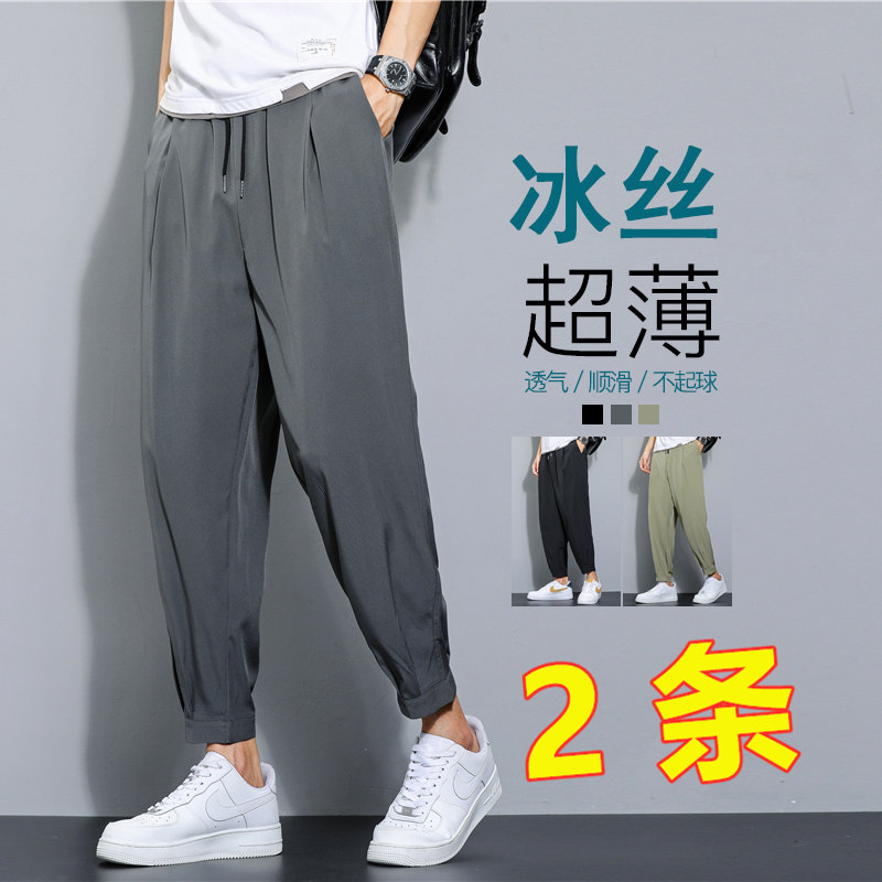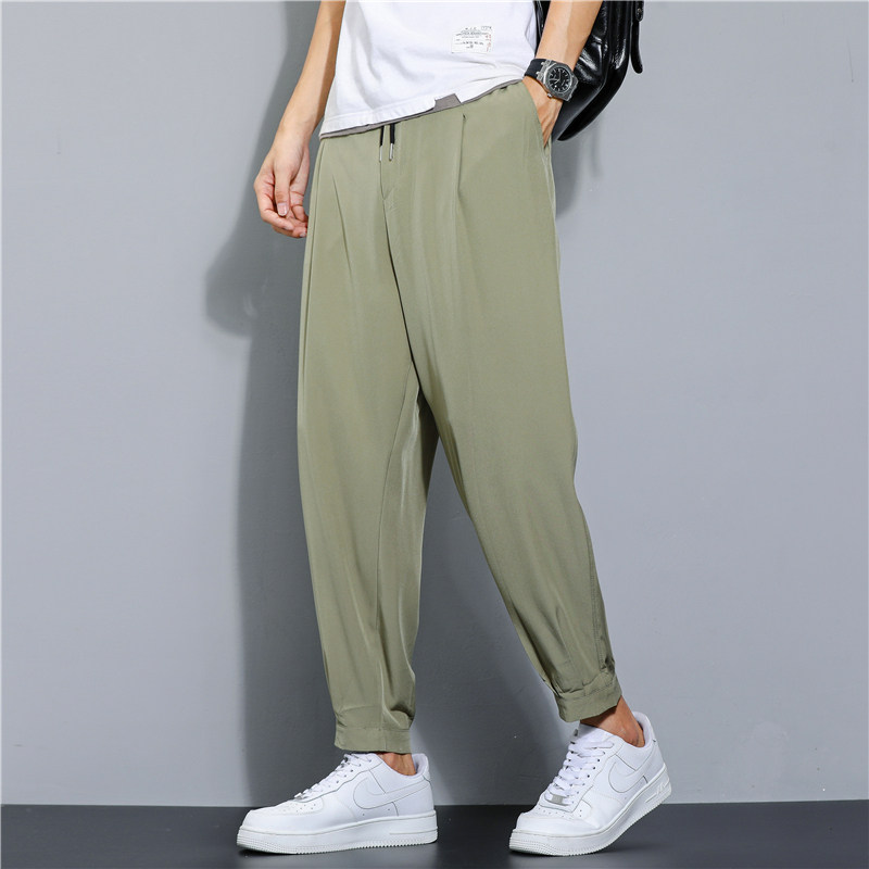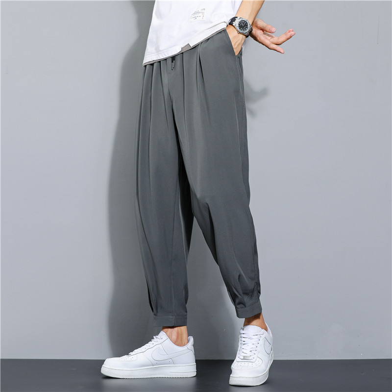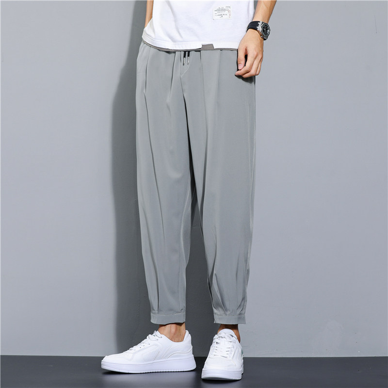 Шелковые летние тонкие быстросохнущие штаны, ультратонкие спортивные мужские повседневные брюки, свободный крой