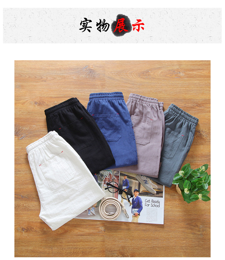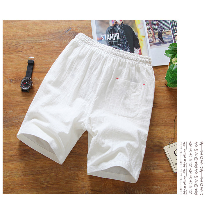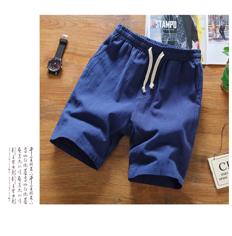 Мужские японские летние пляжные дышащие шорты, штаны, из хлопка и льна