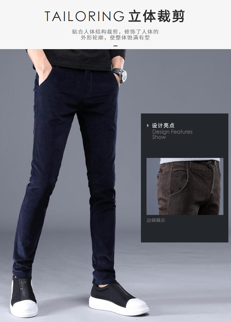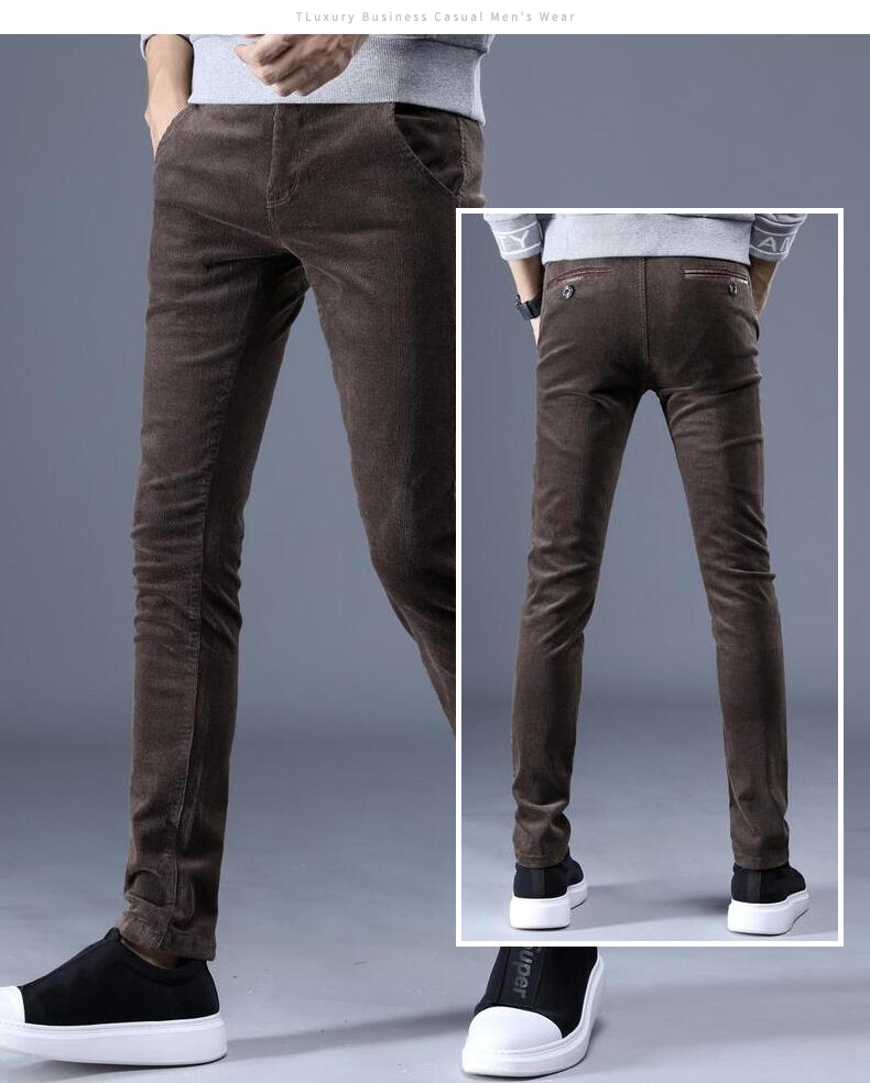 Демисезонные мужские штаны, вельветовая удерживающая тепло подсветка пола, облегающий крой