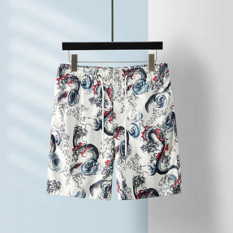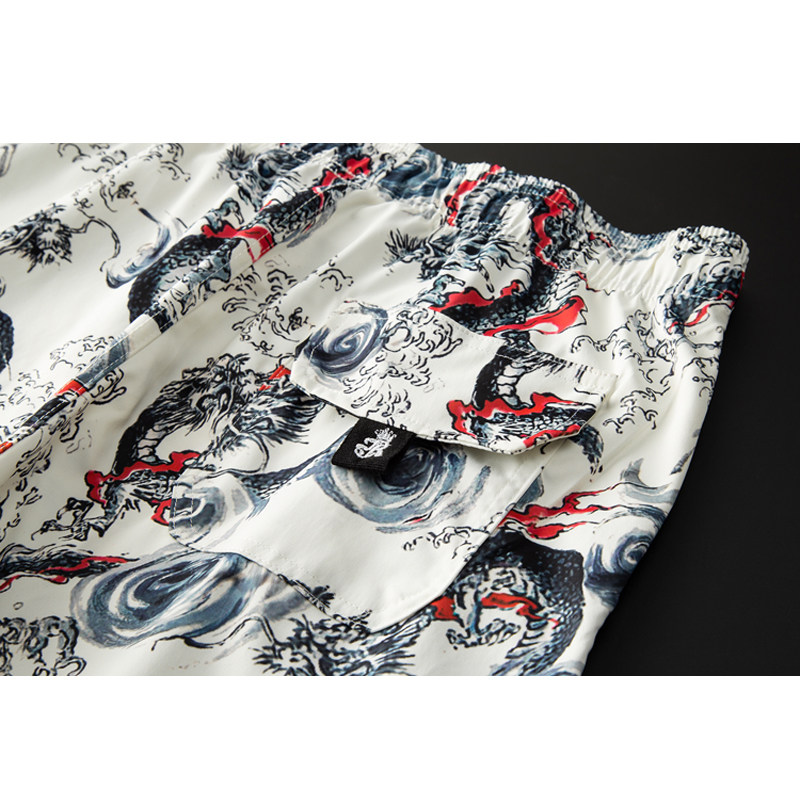 Шорты, ретро пляжные штаны, принт, китайский стиль, оверсайз