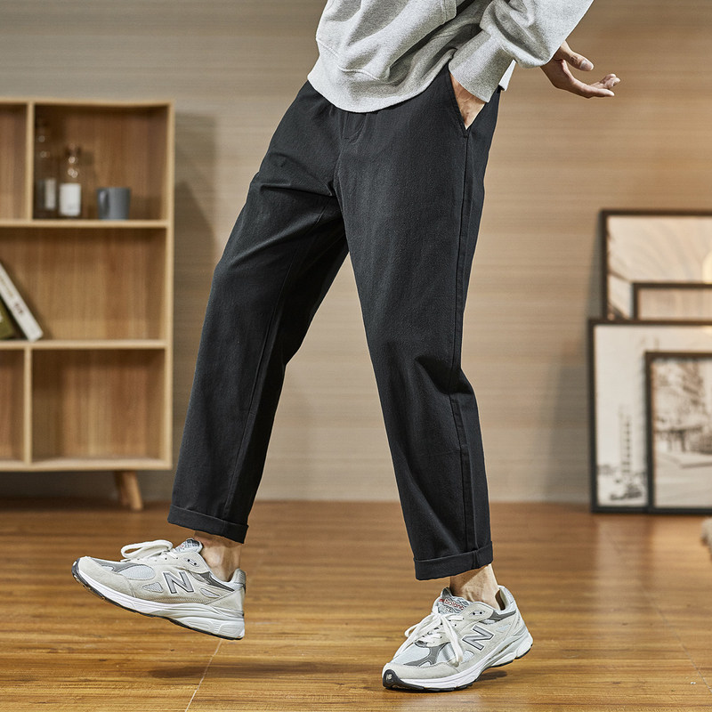 Демисезонные черные повседневные брюки, трендовые штаны, 2020, в корейском стиле, свободный прямой крой
