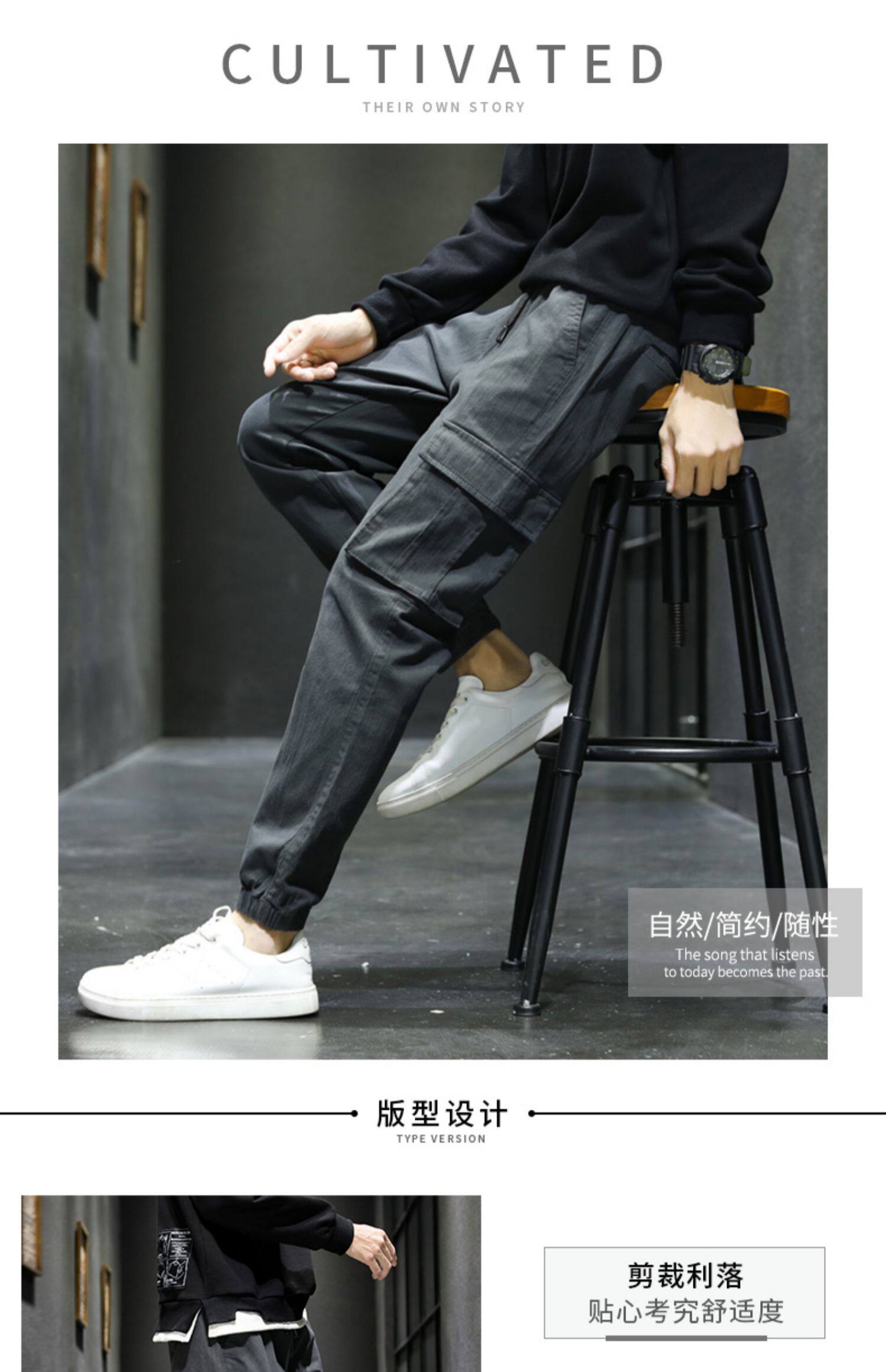 Японские осенние черные штаны, свободный прямой крой