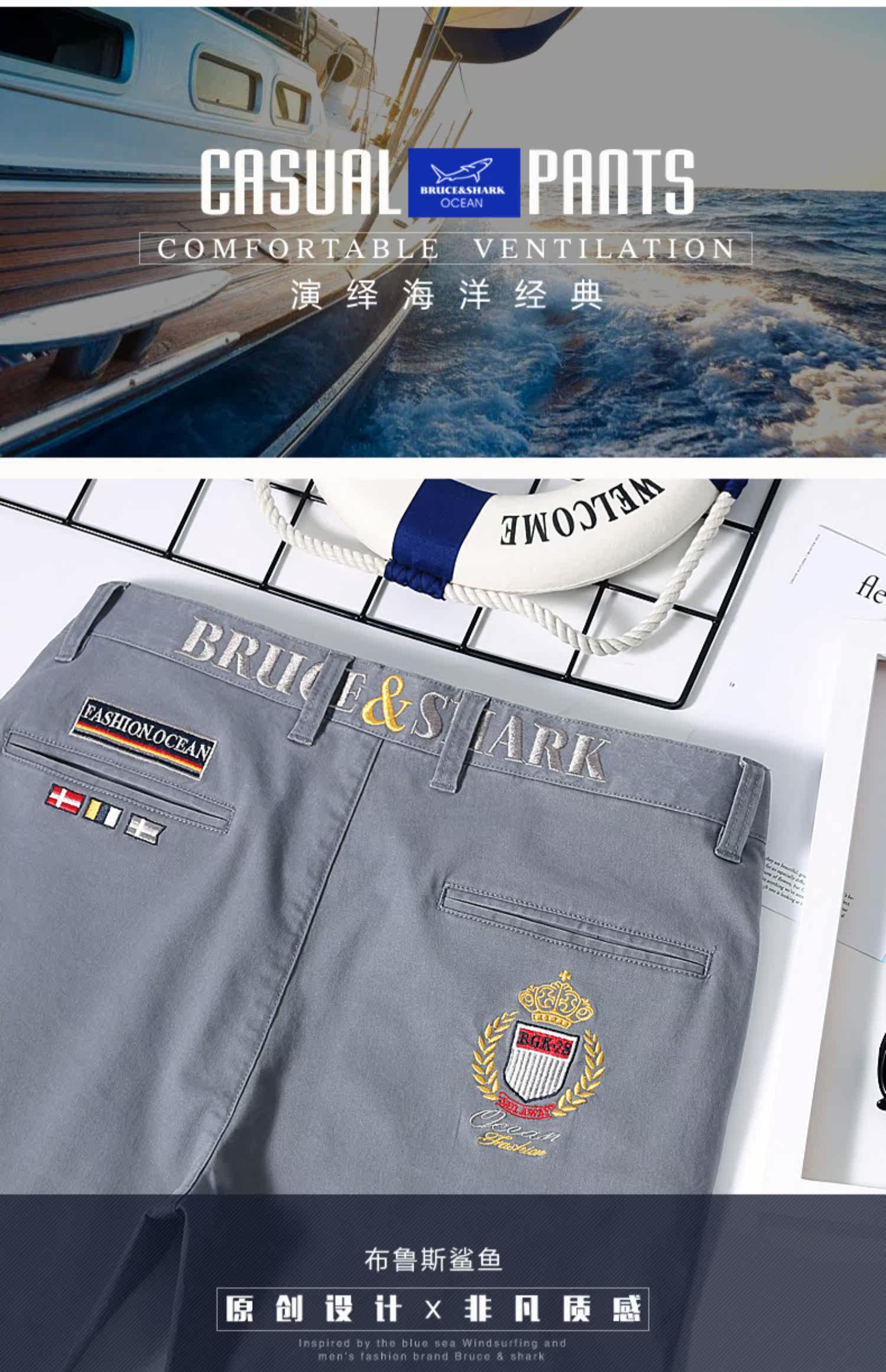 Мужские осенние штаны для отдыха, акула, свободный прямой крой, с вышивкой