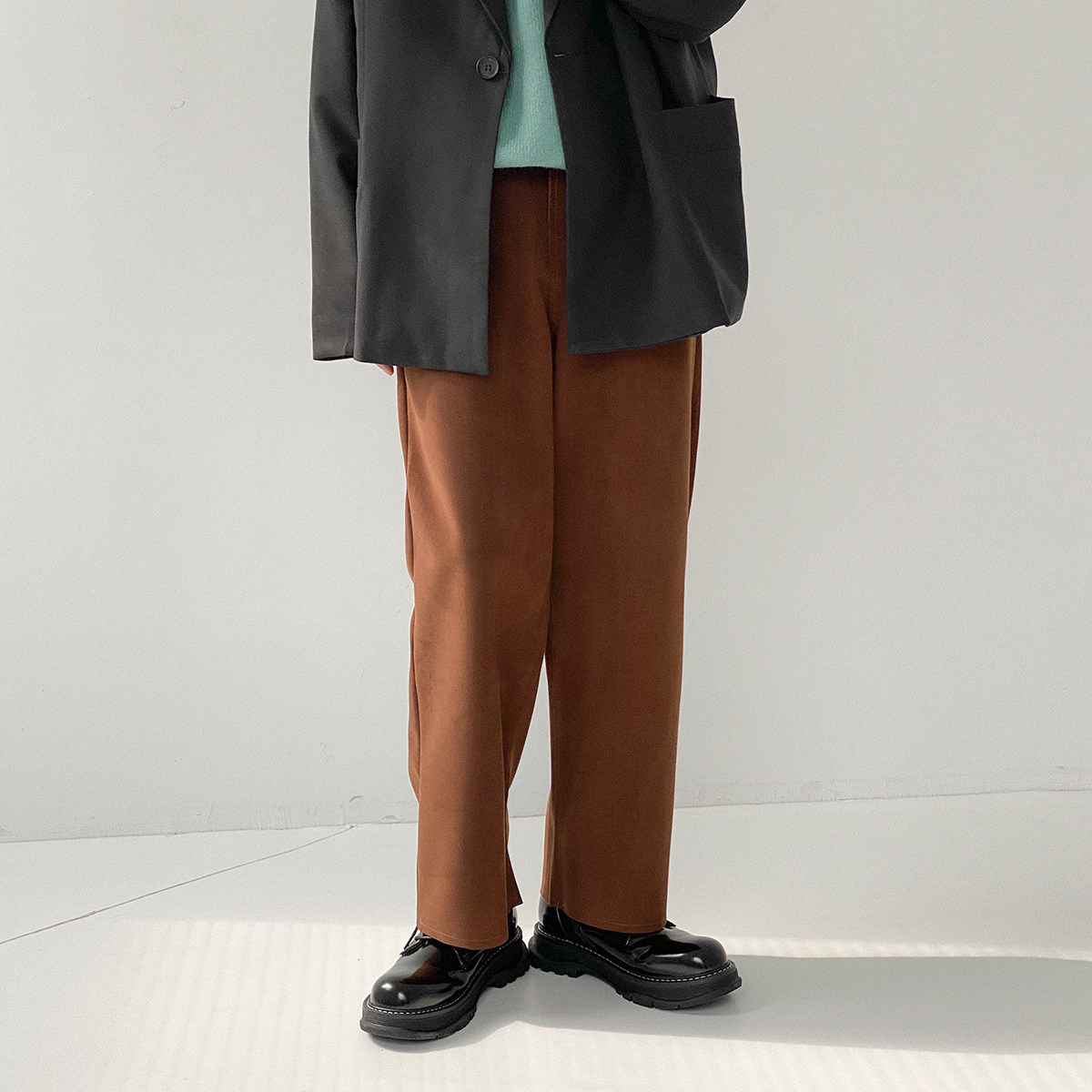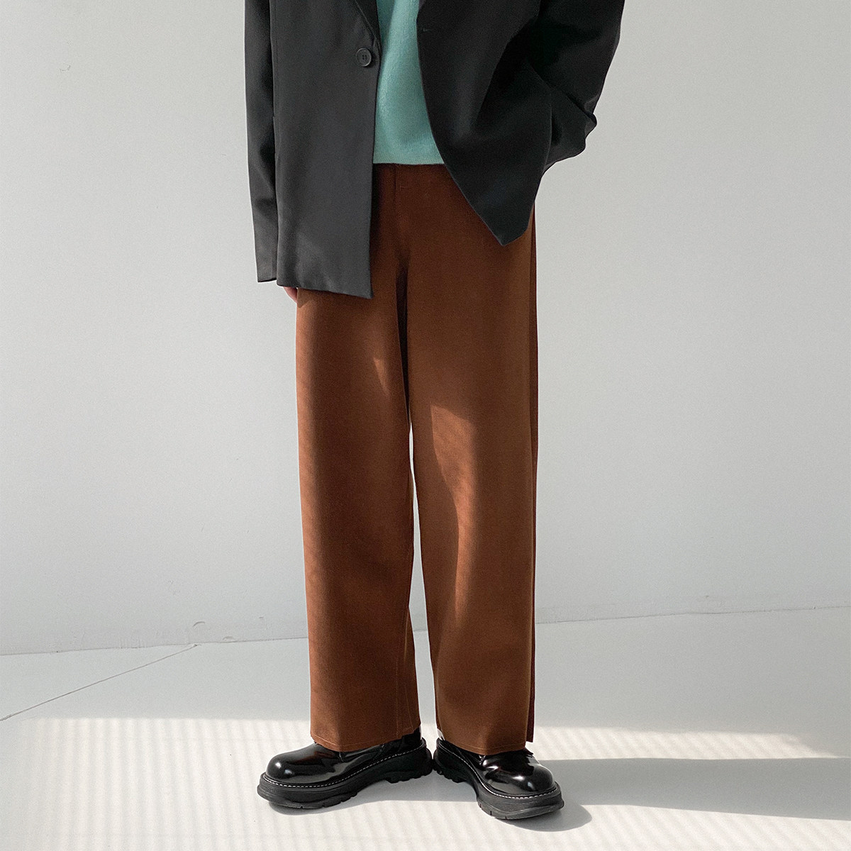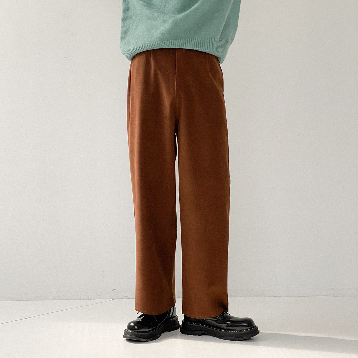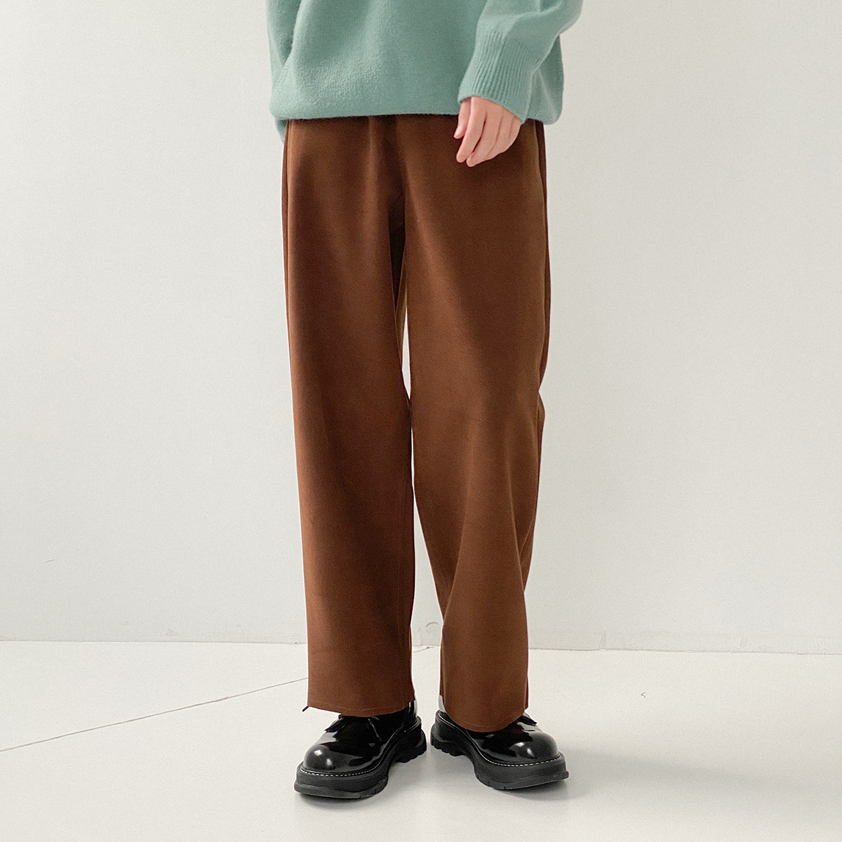Шерстяные штаны, трендовые брендовые джинсы с начесом, оверсайз, в корейском стиле, свободный прямой крой