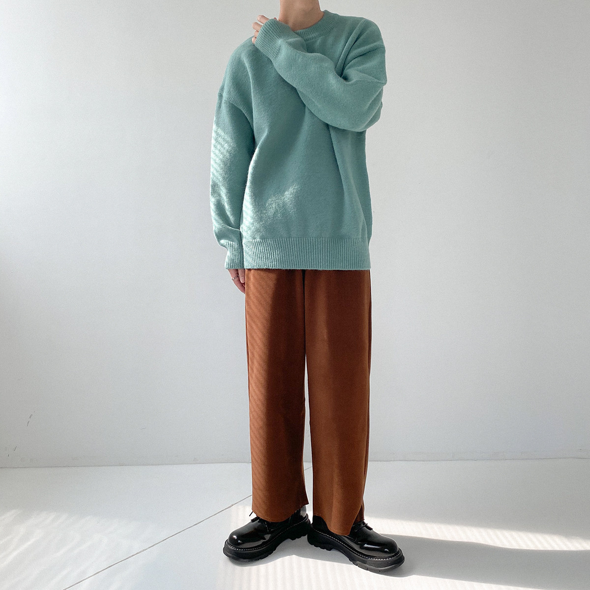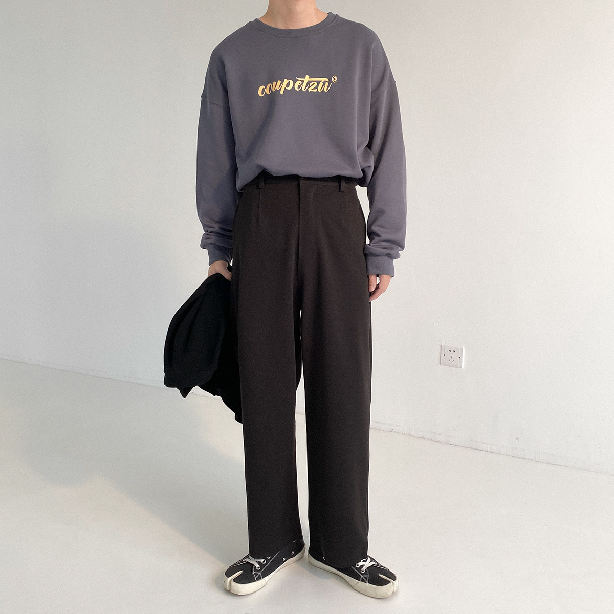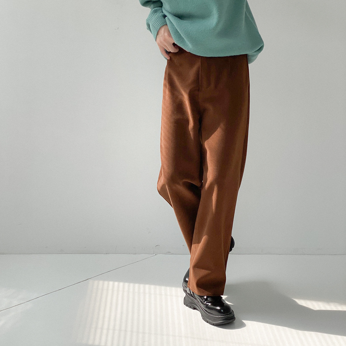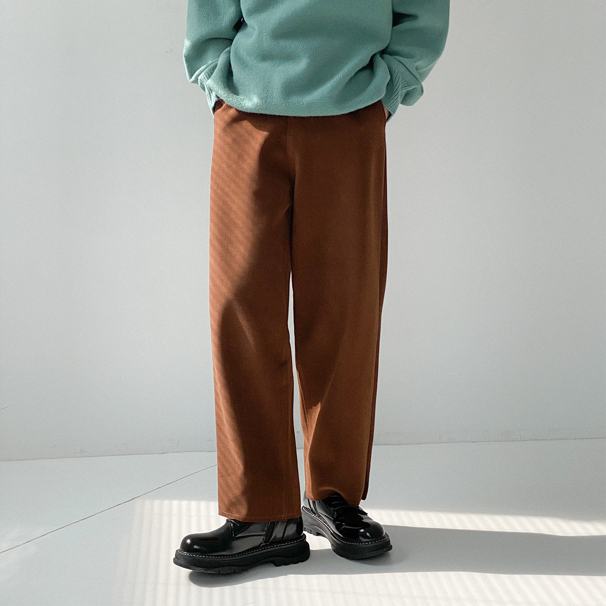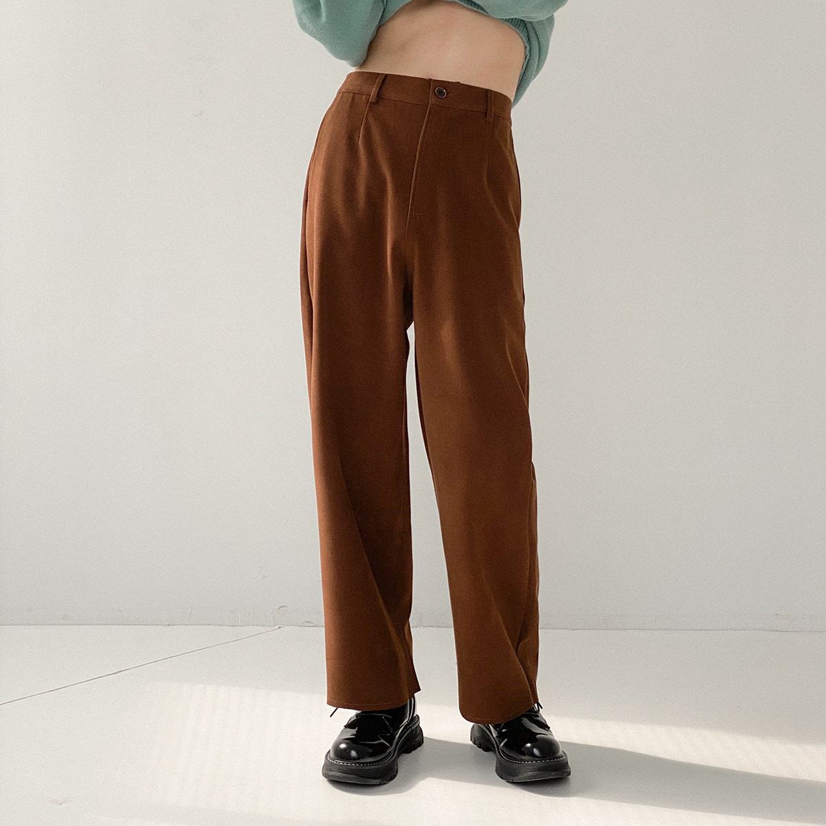 Шерстяные штаны, трендовые брендовые джинсы с начесом, оверсайз, в корейском стиле, свободный прямой крой
