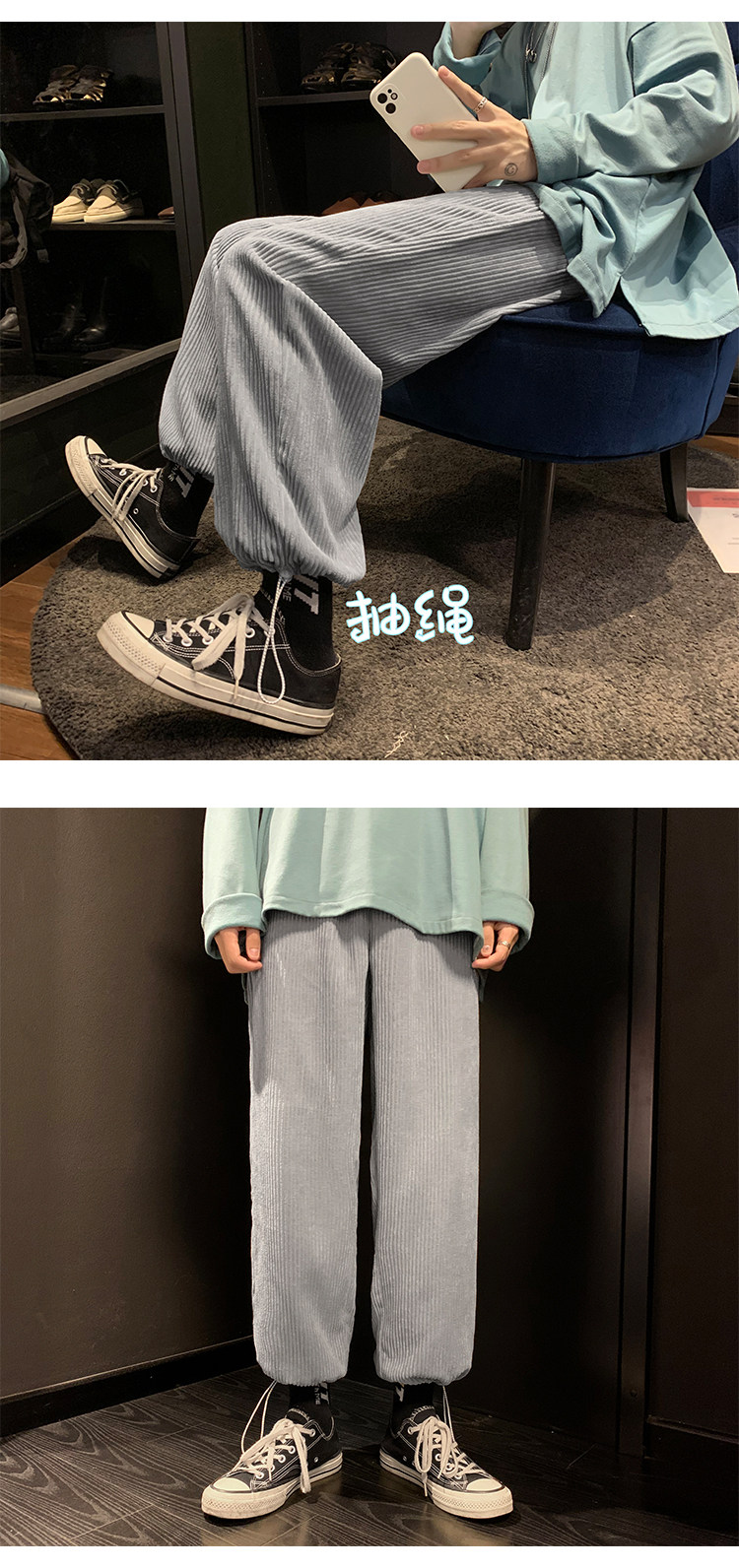 Вельветовые весенние штаны, осенние трендовые брендовые повседневные брюки для отдыха, свободный крой, на шнурках
