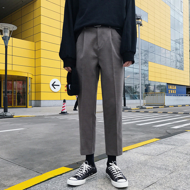 Весенние трендовые шерстяные осенние штаны, в корейском стиле, свободный прямой крой, оверсайз
