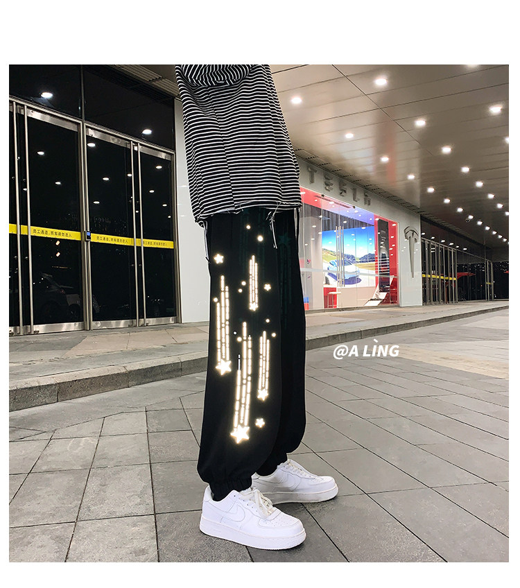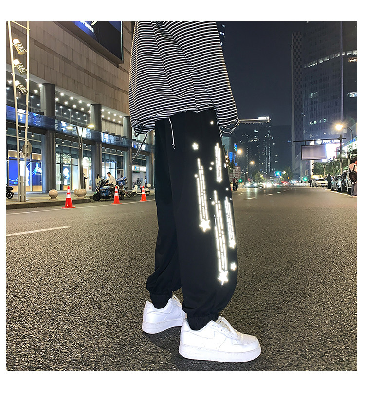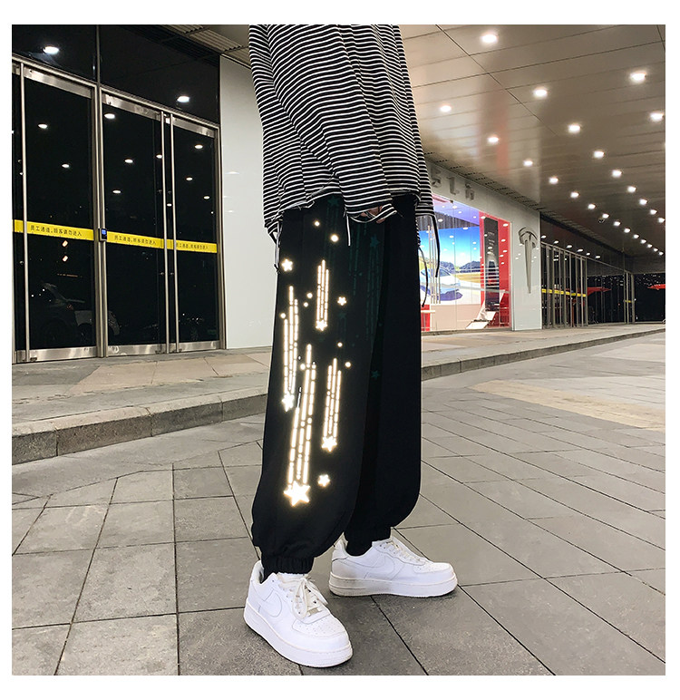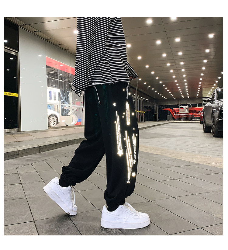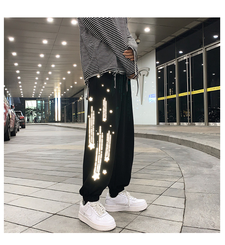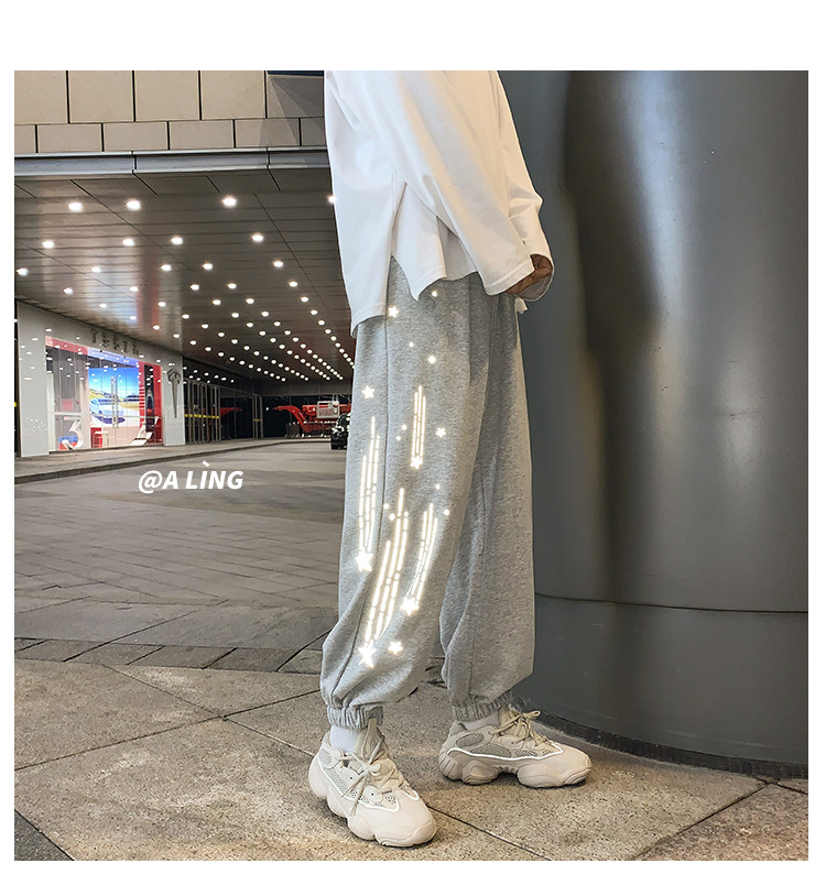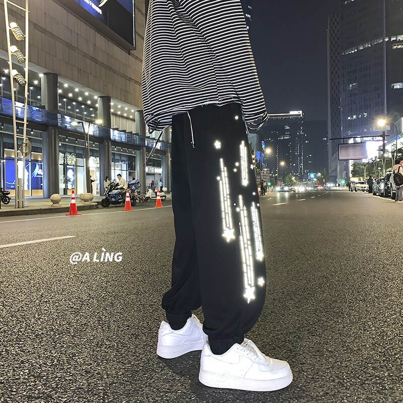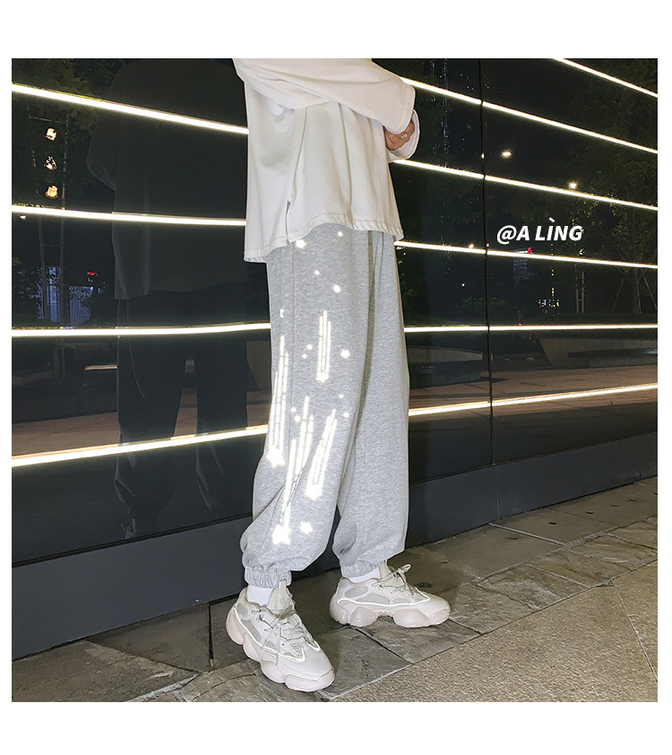 Tide, трендовые демисезонные светоотражающие спортивные штаны, свободный крой, в корейском стиле