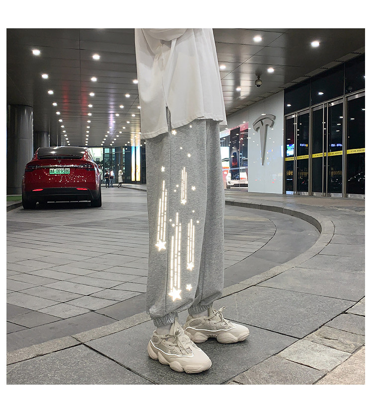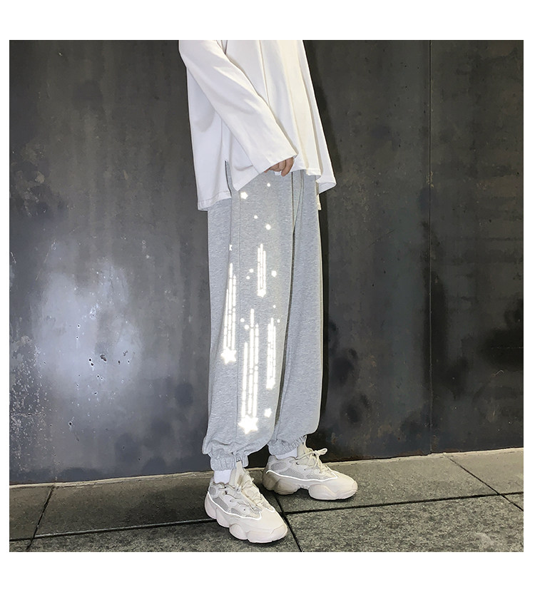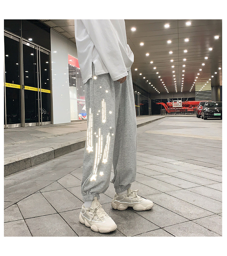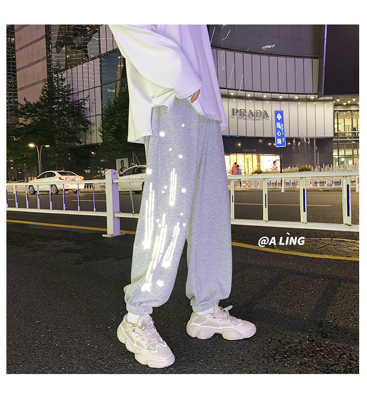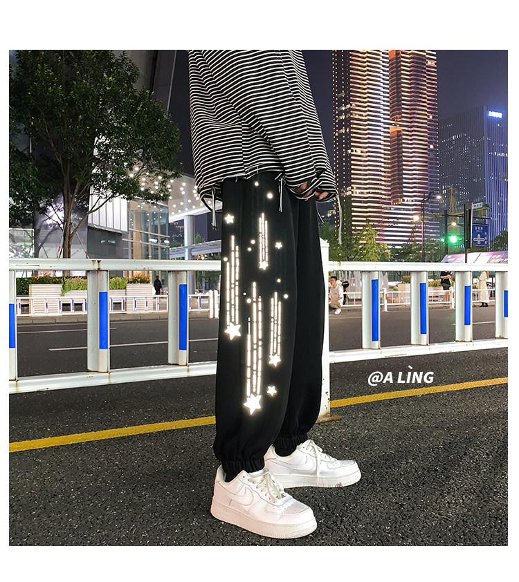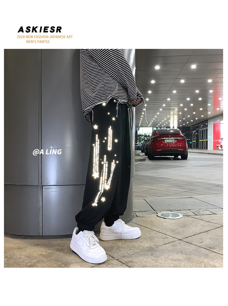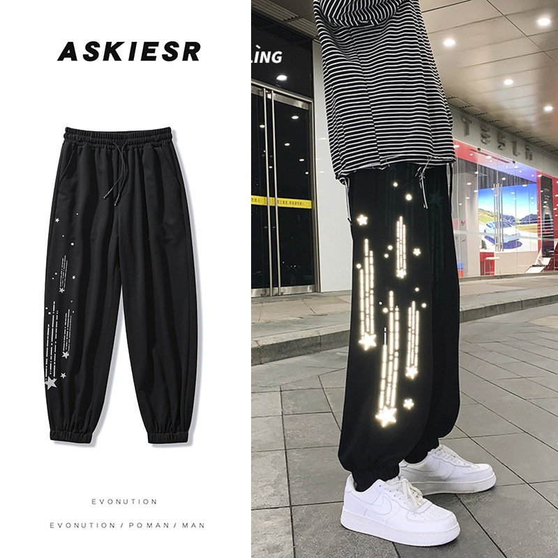 Tide, трендовые демисезонные светоотражающие спортивные штаны, свободный крой, в корейском стиле