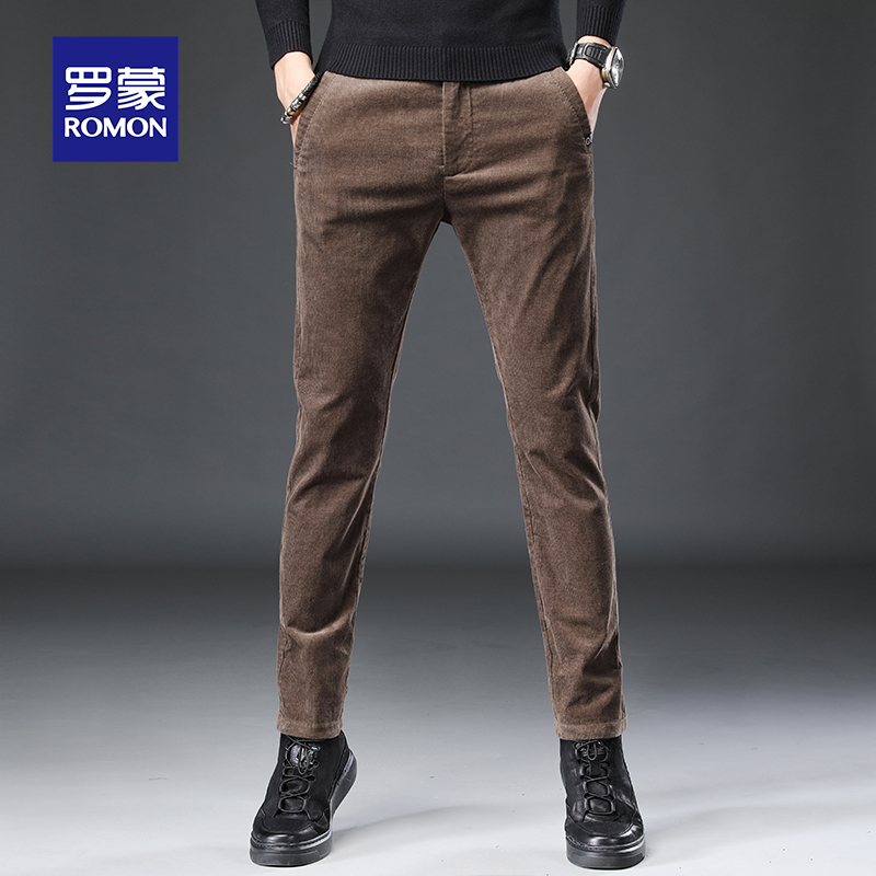 Вельветовые приталенные демисезонные мужские штаны для отдыха