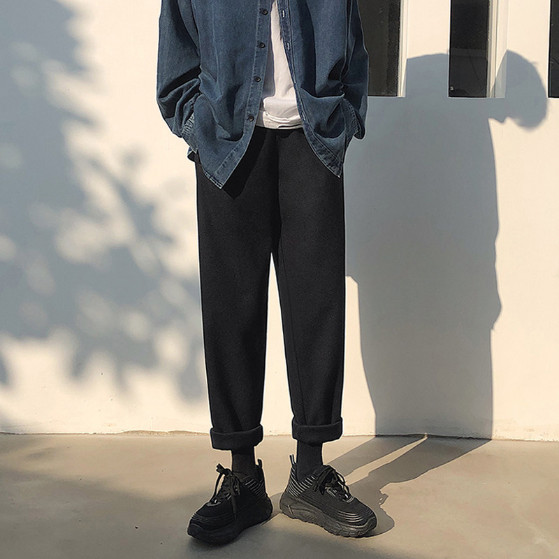Демисезонные утепленные шерстяные трендовые зимние штаны, свободный прямой крой