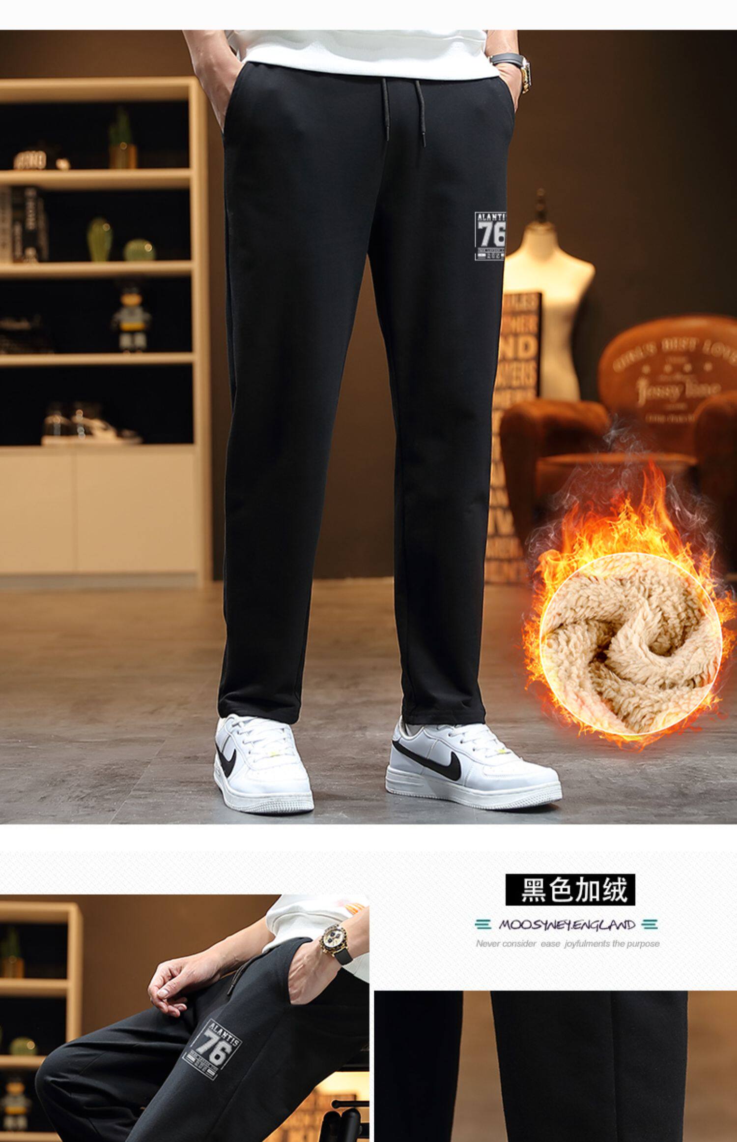 Мужские спортивные демисезонные повседневные брюки, трендовые утепленные универсальные штаны, в корейском стиле, свободный прямой крой