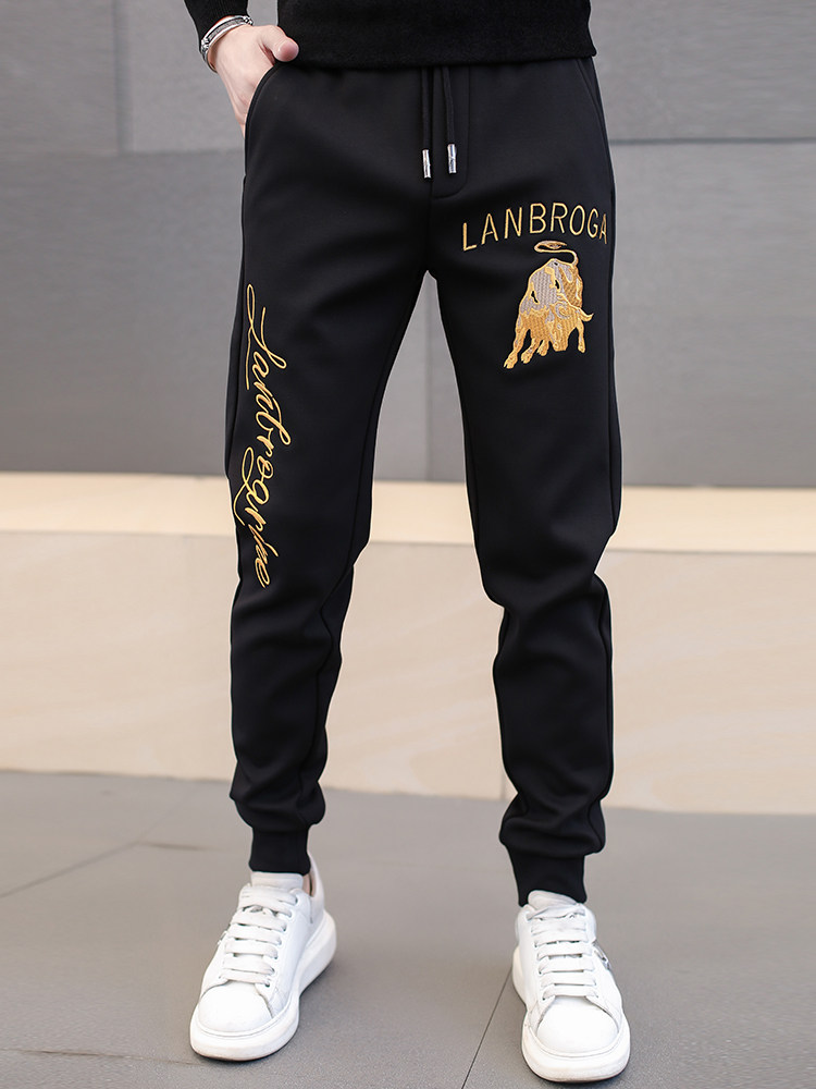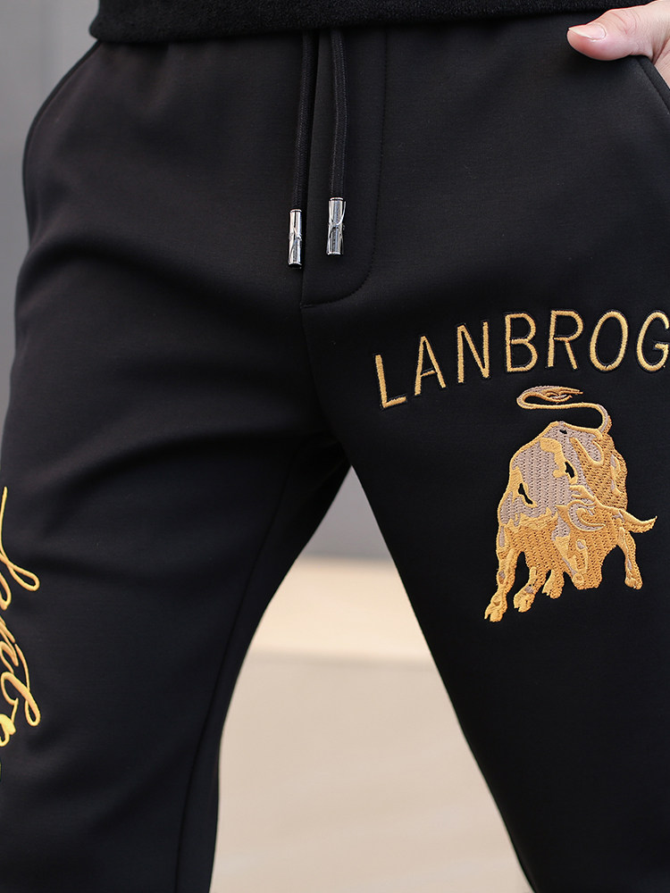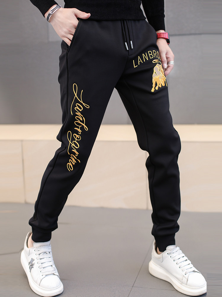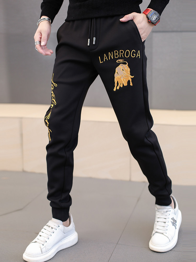 Летние тонкие штаны, трендовые спортивные повседневные брюки, с вышивкой