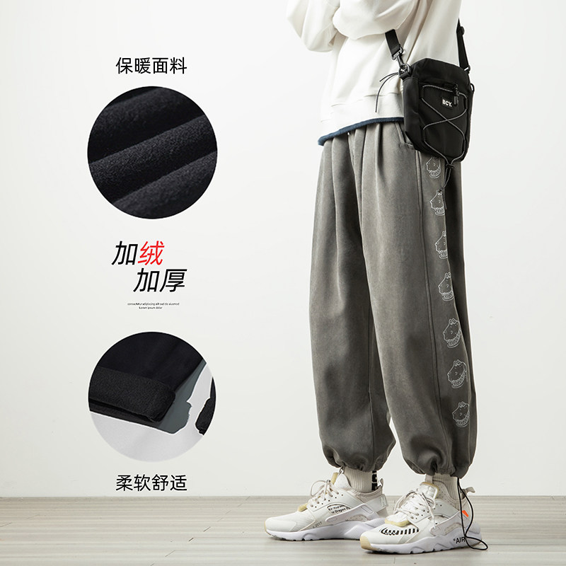 Утепленные трендовые зимние штаны для отдыха, свободный крой, оверсайз, большой размер, в корейском стиле, на шнурках