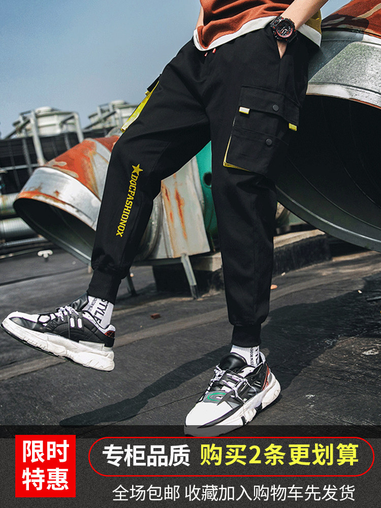 Мужские осенние демисезонные трендовые штаны, спортивные летние тонкие универсальные повседневные брюки, в корейском стиле, свободный крой