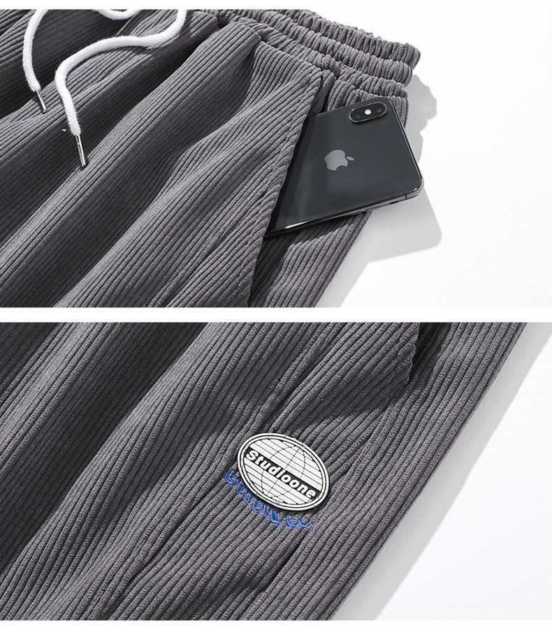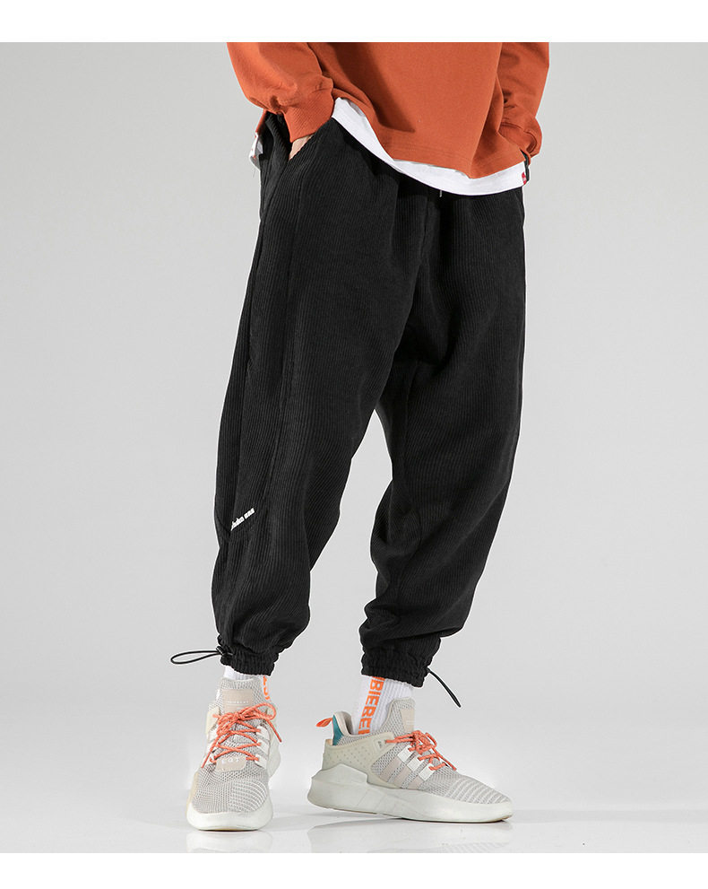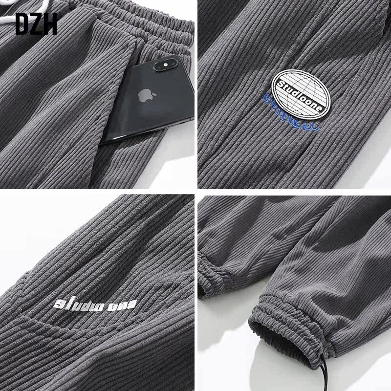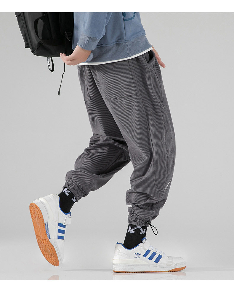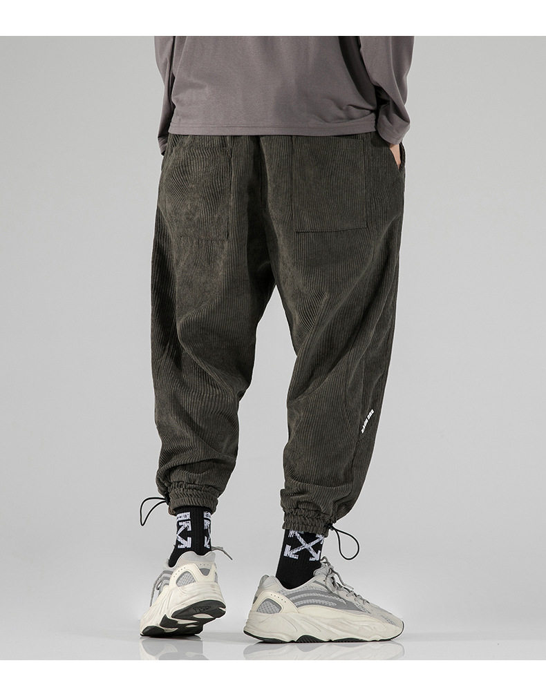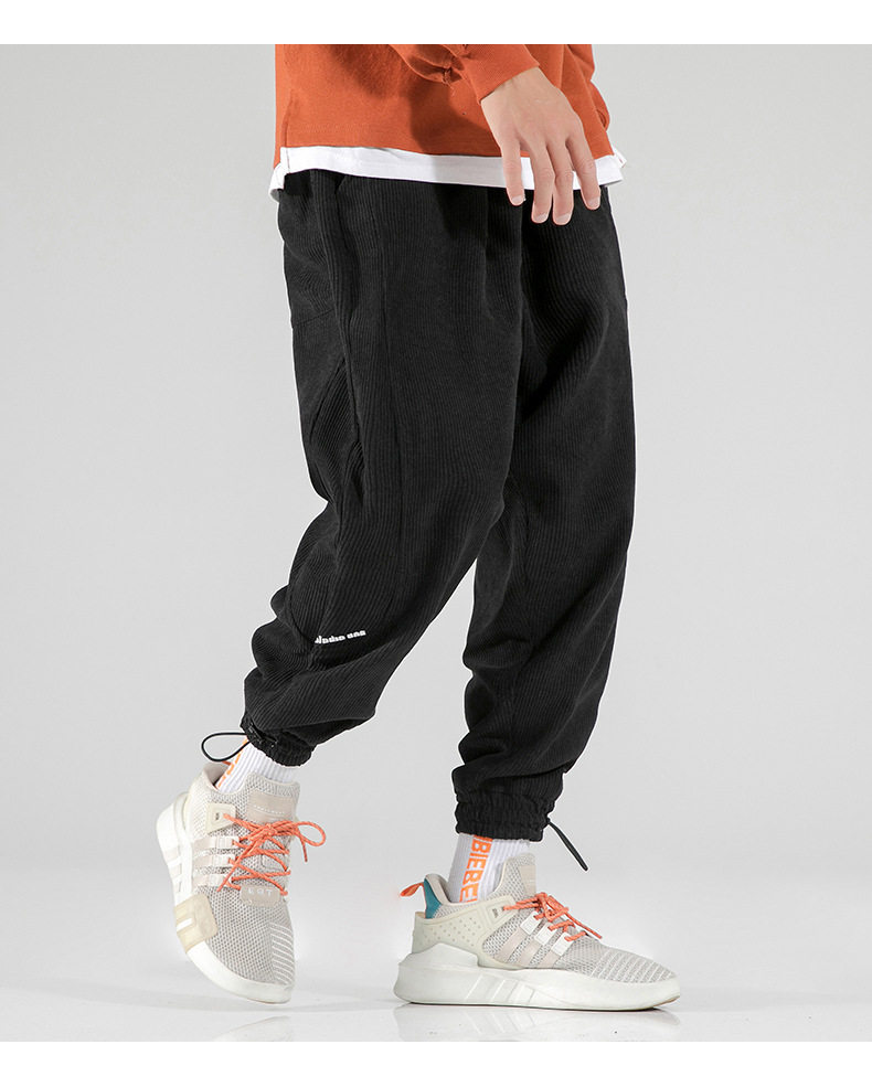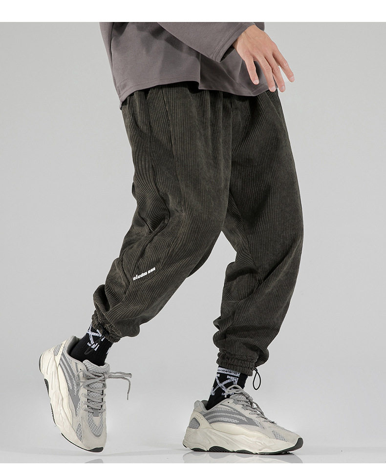 Вельветовые демисезонные трендовые универсальные штаны, в корейском стиле, свободный крой, на шнурках