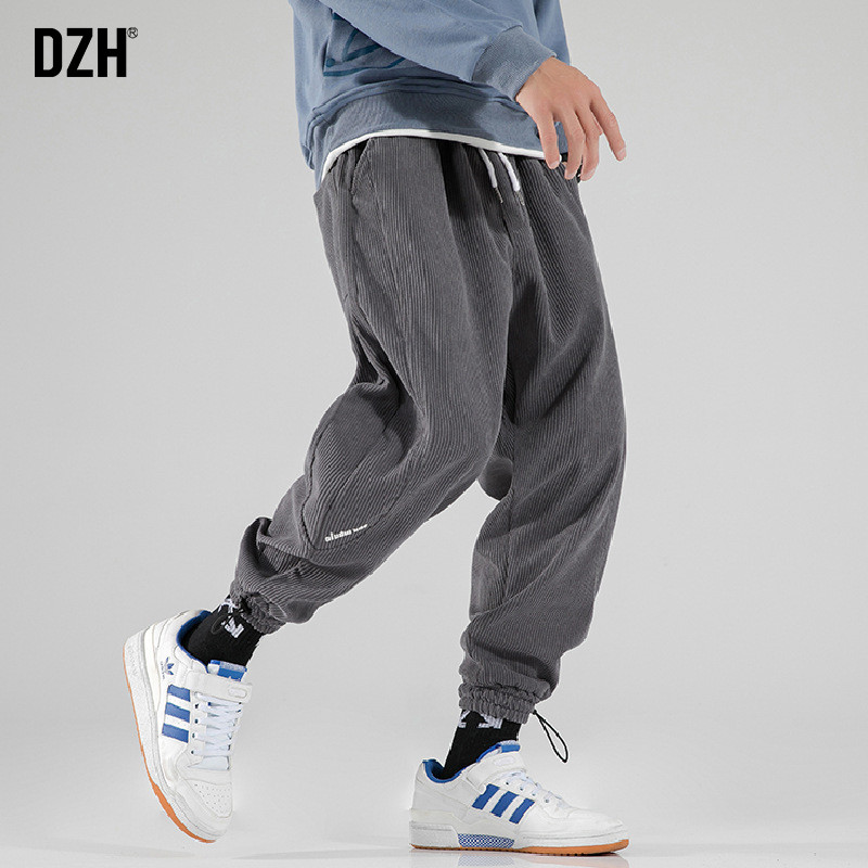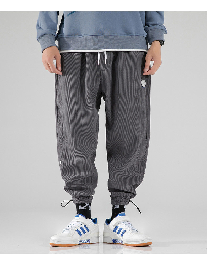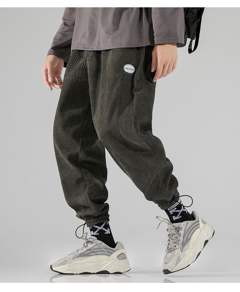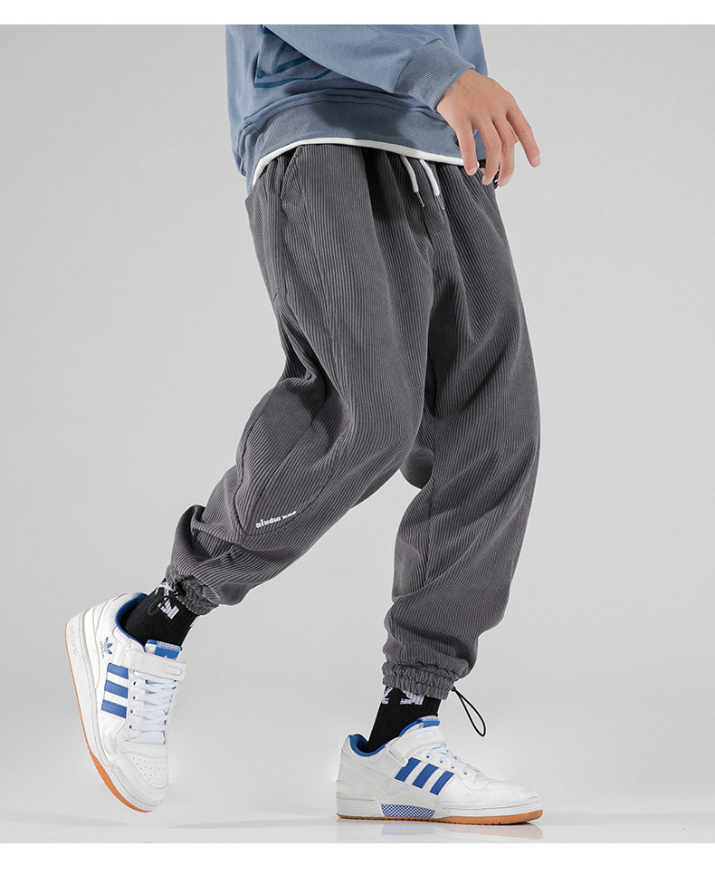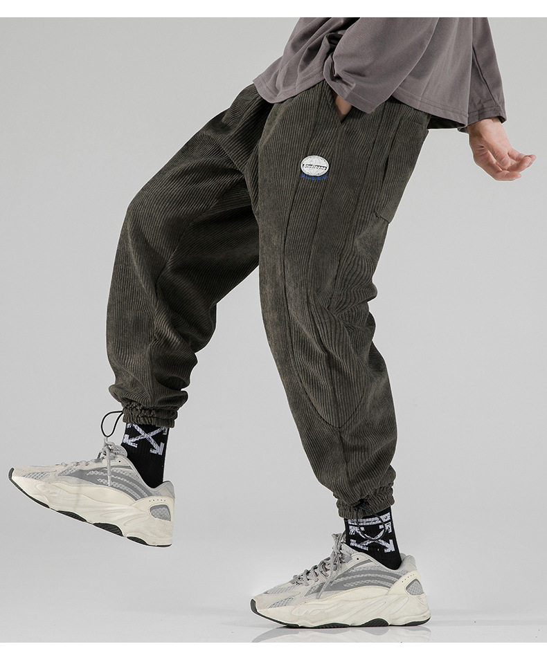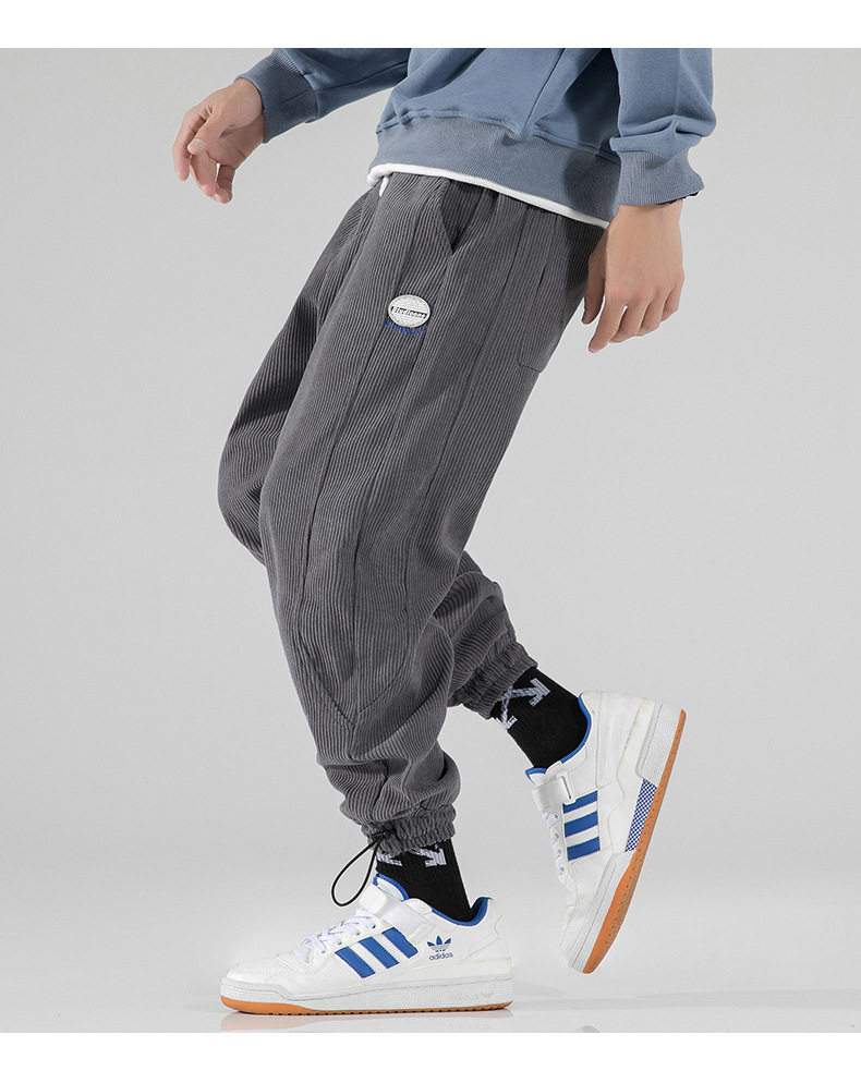 Вельветовые демисезонные трендовые универсальные штаны, в корейском стиле, свободный крой, на шнурках