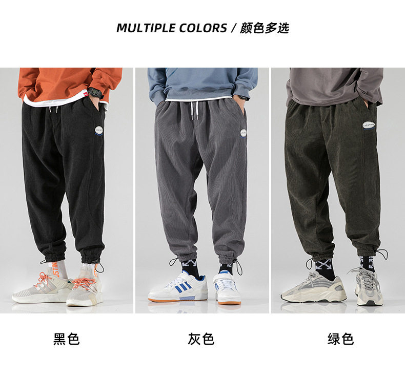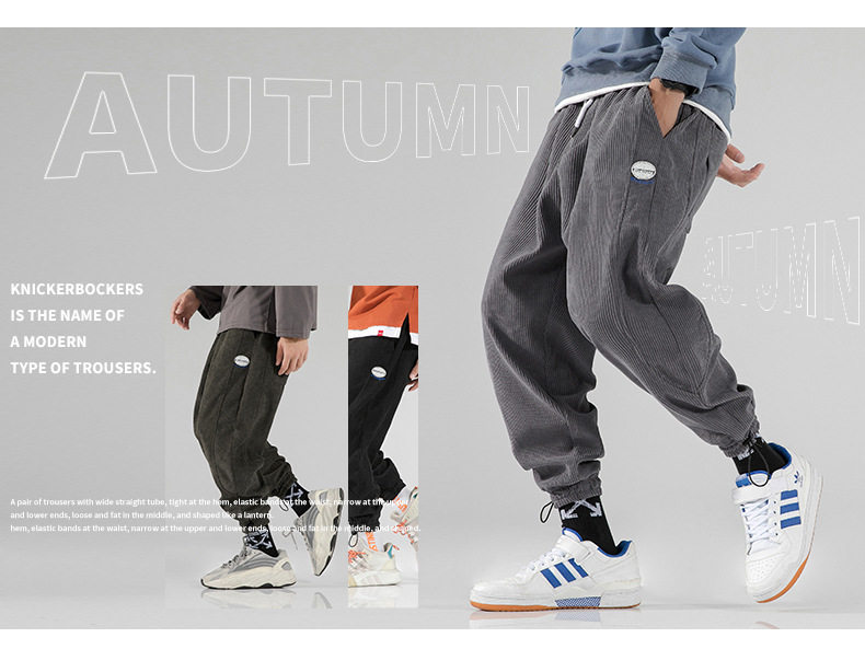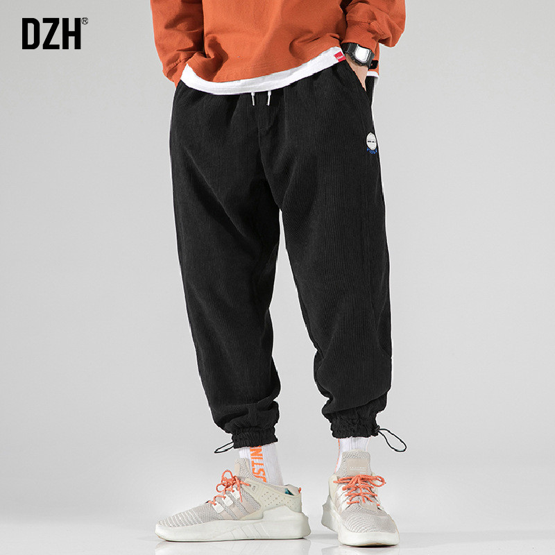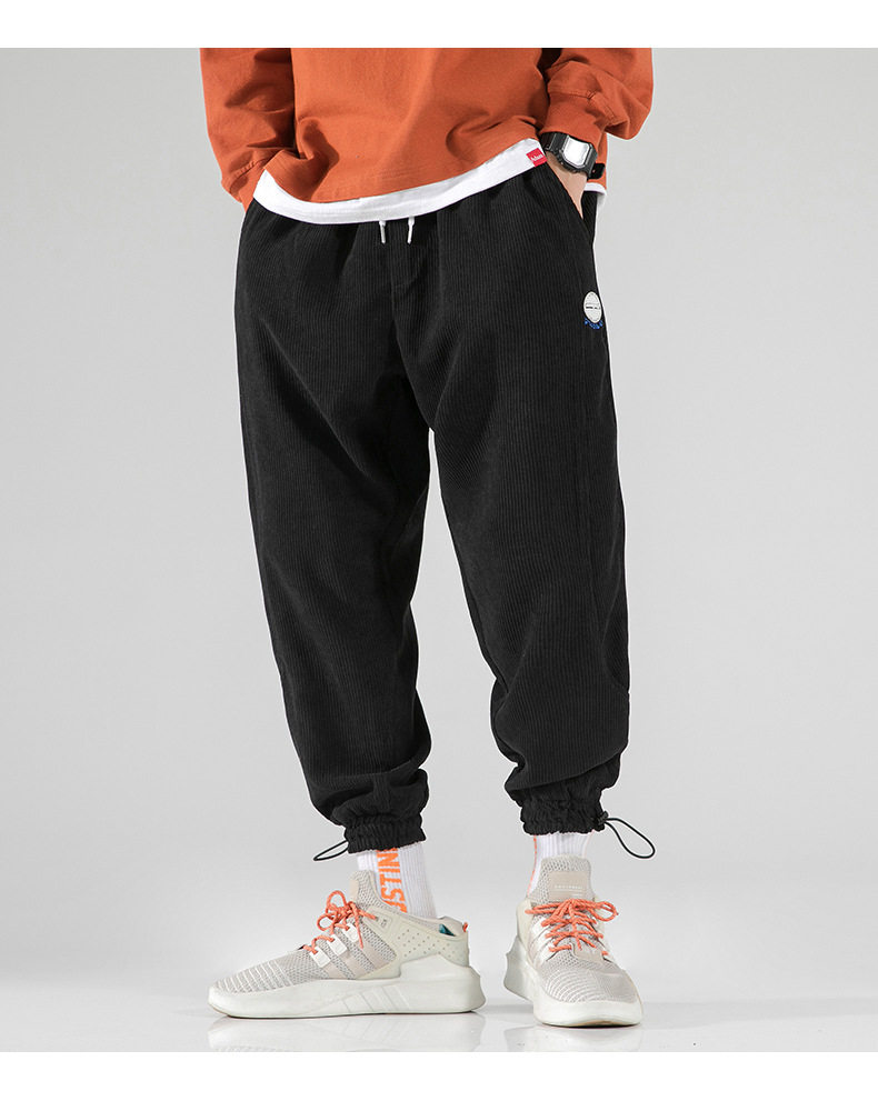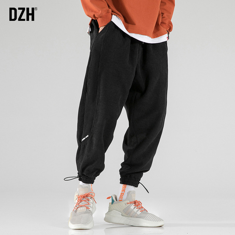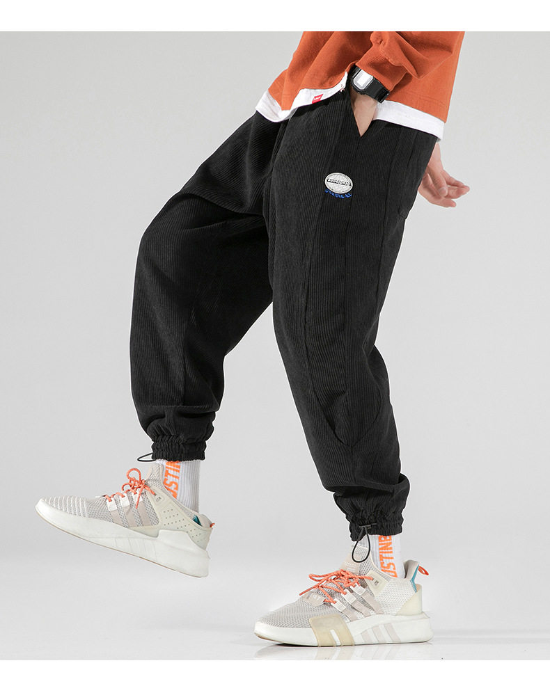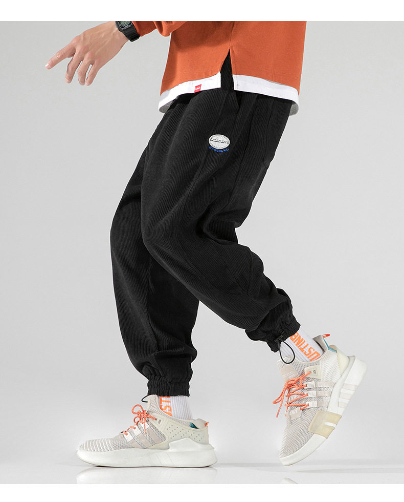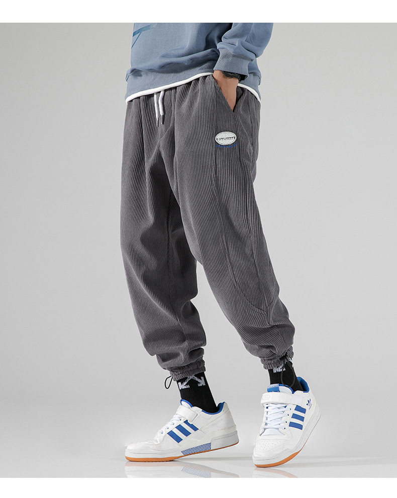 Вельветовые демисезонные трендовые универсальные штаны, в корейском стиле, свободный крой, на шнурках