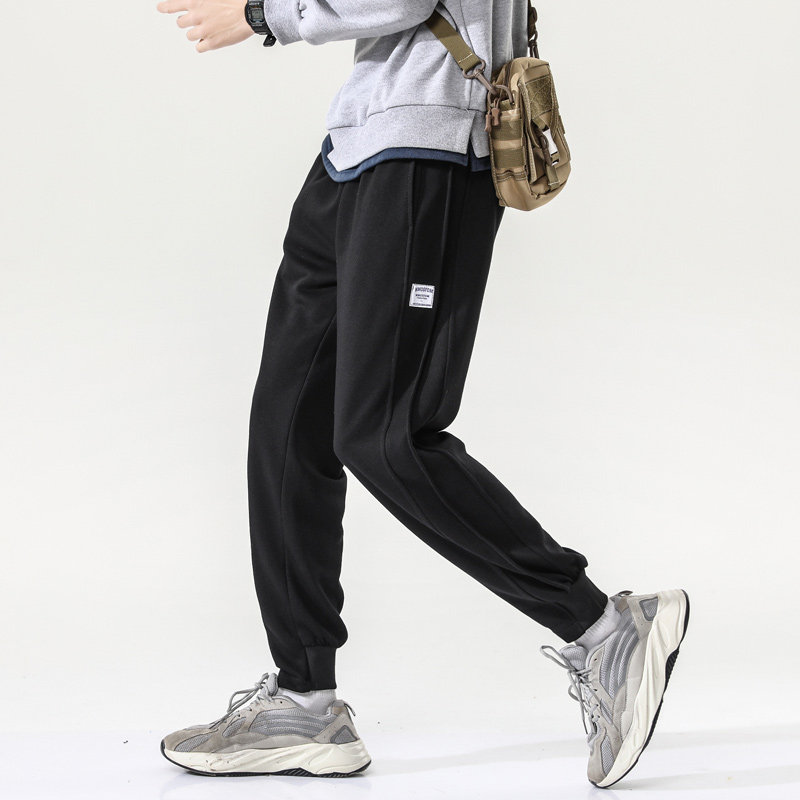Черные демисезонные японские мужские штаны, в американском стиле, на шнурках