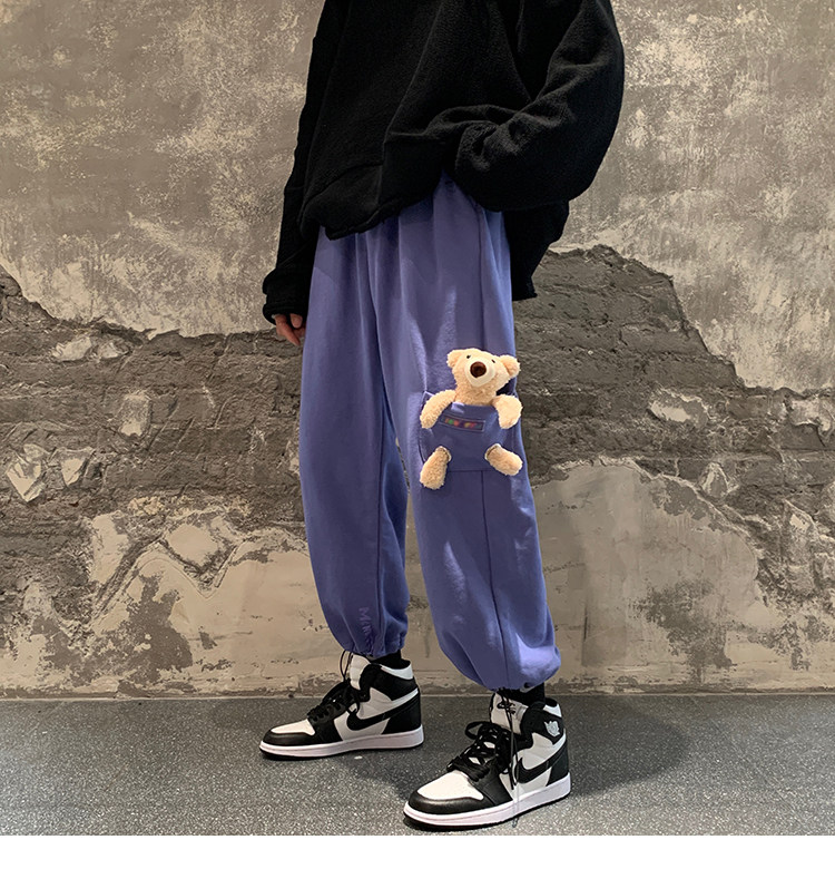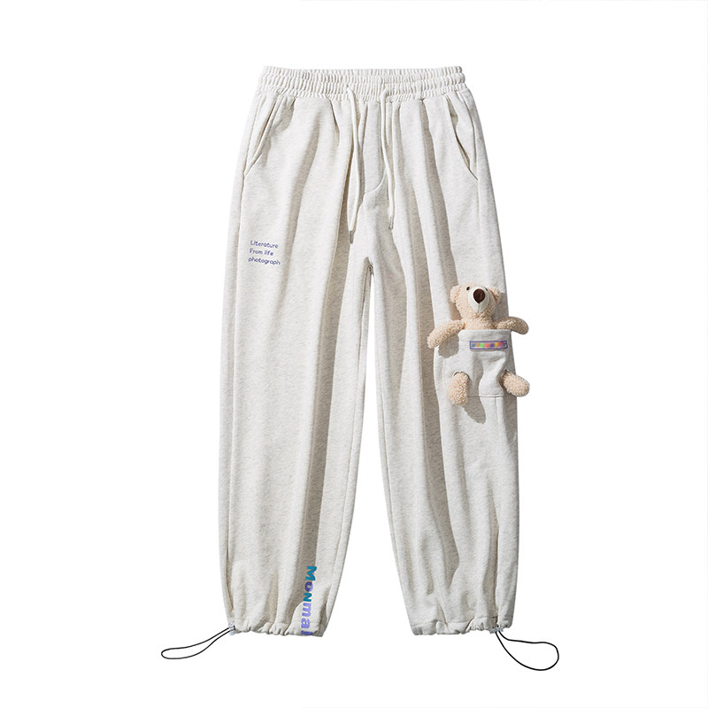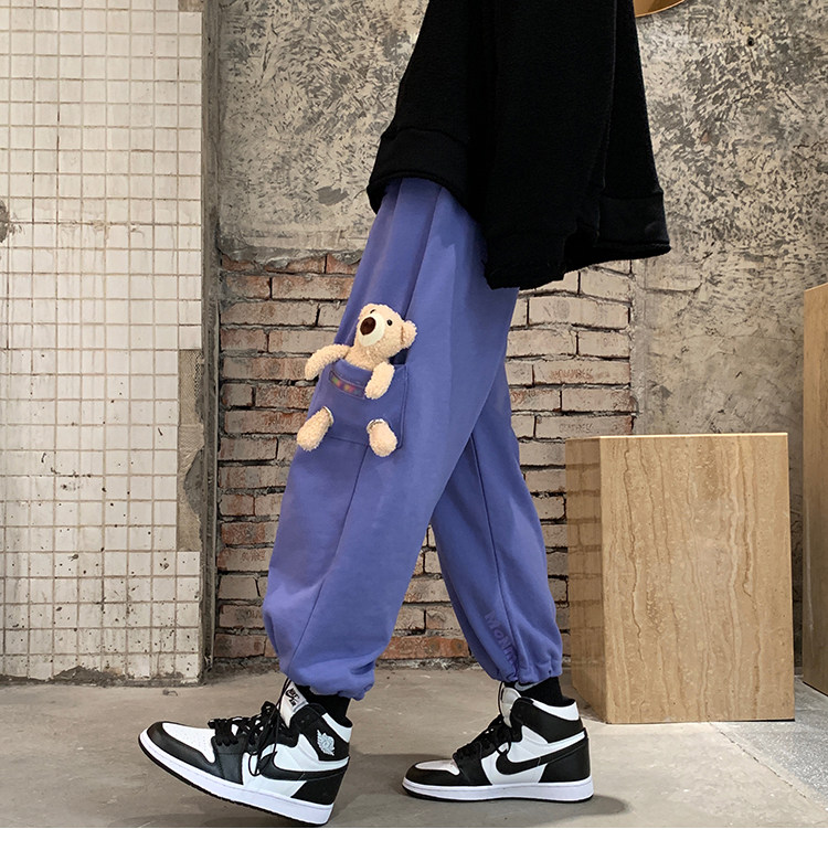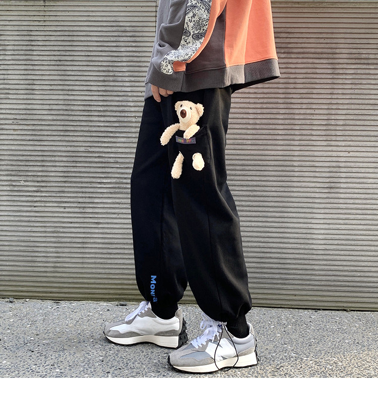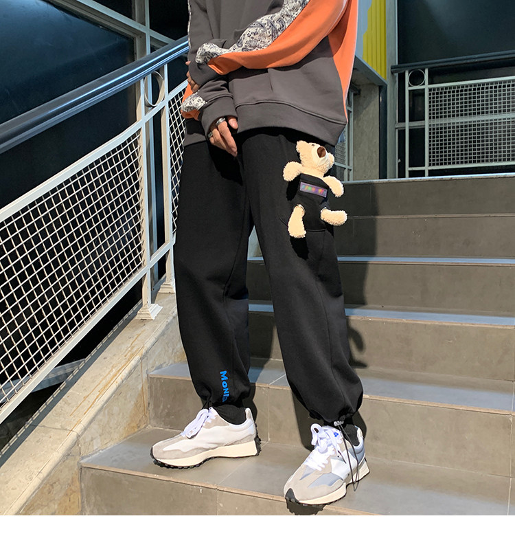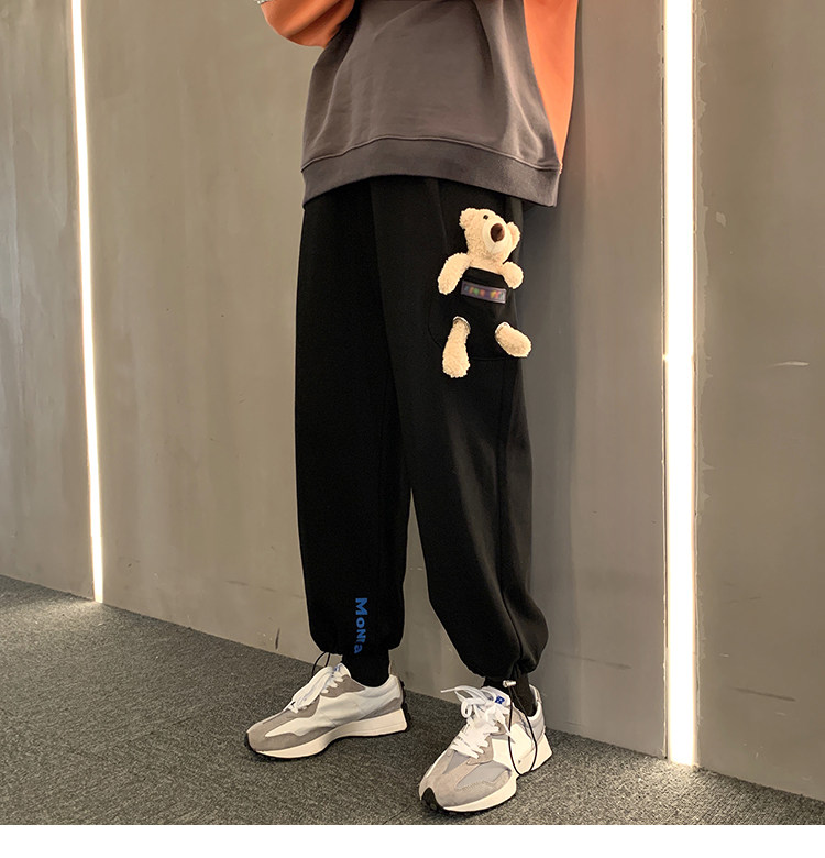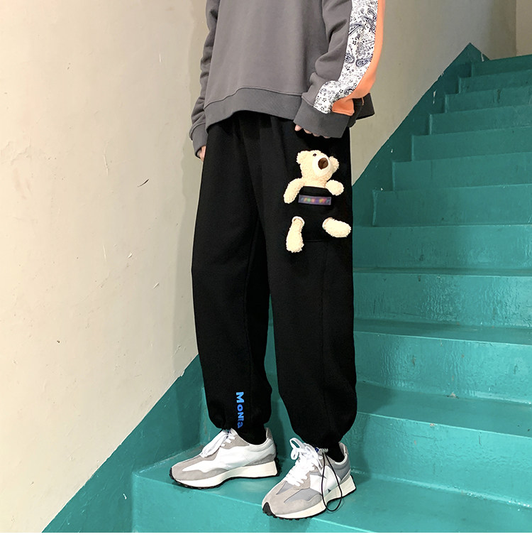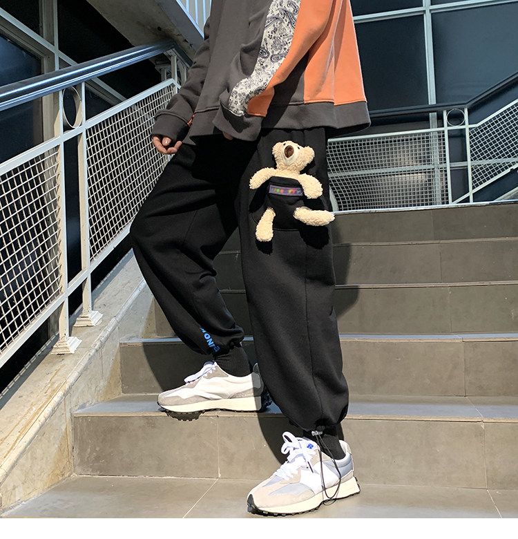 Штаны, зимние утепленные джинсы с начесом в стиле хип-хоп, с медвежатами, на шнурках