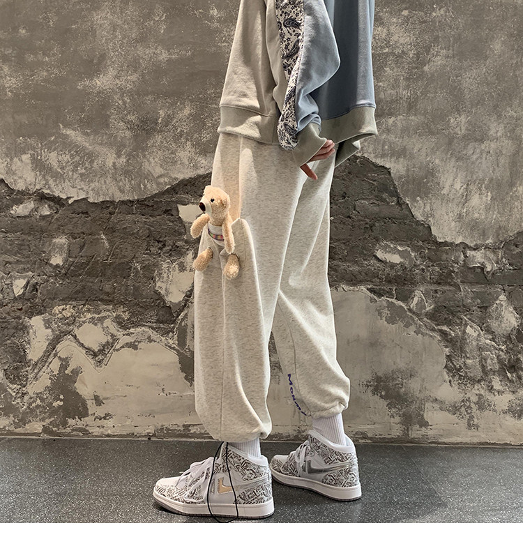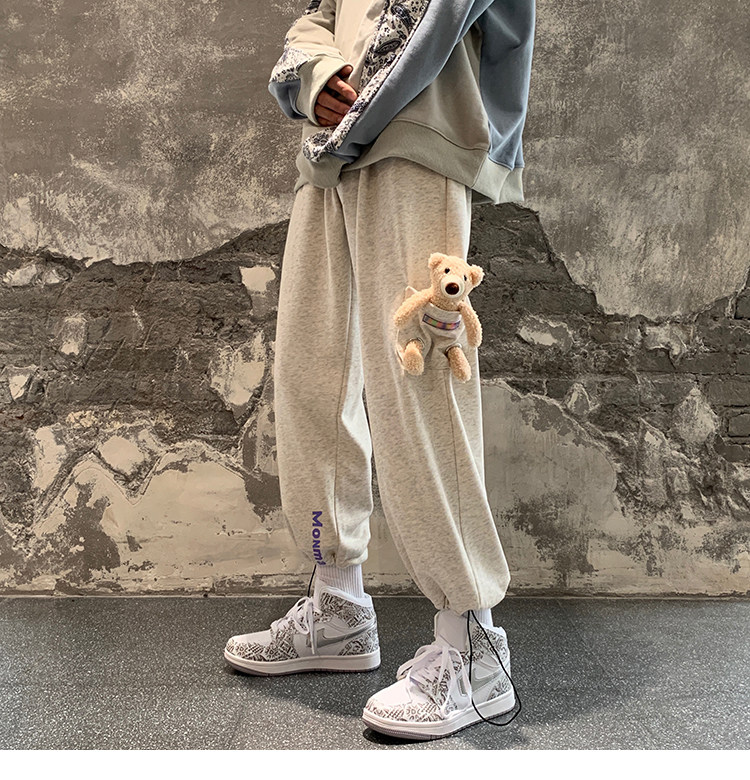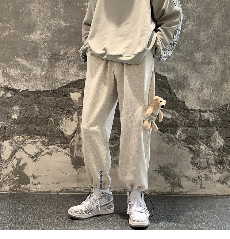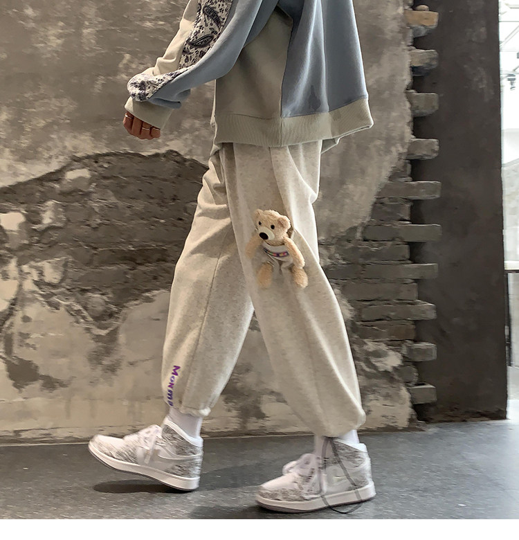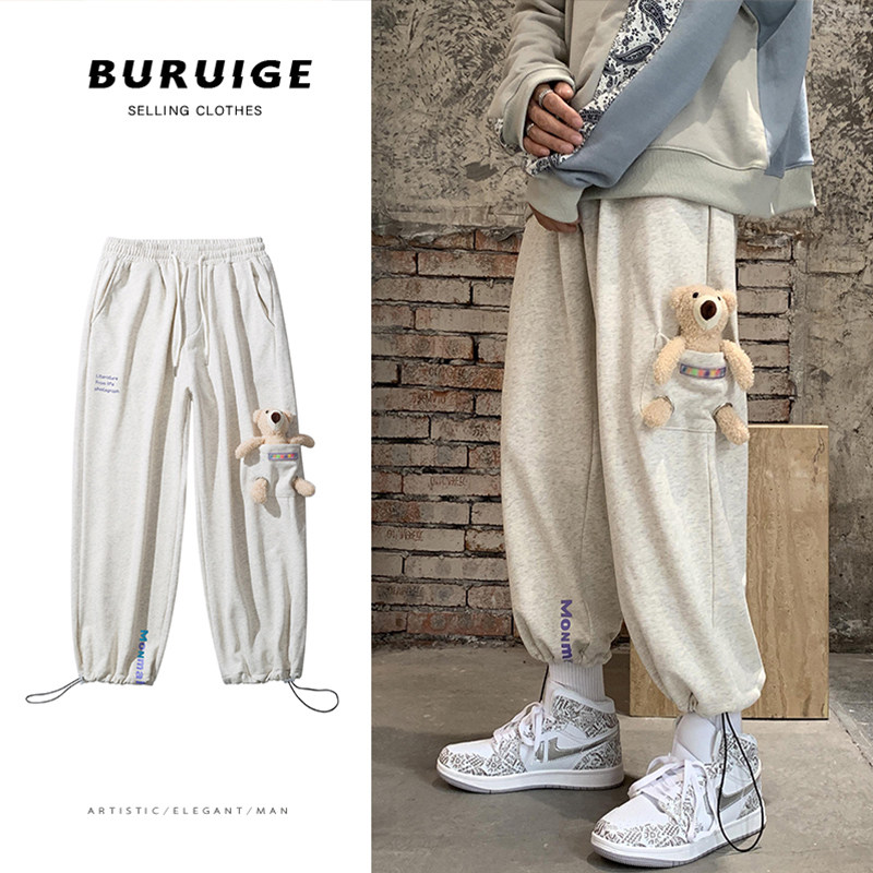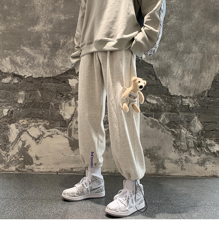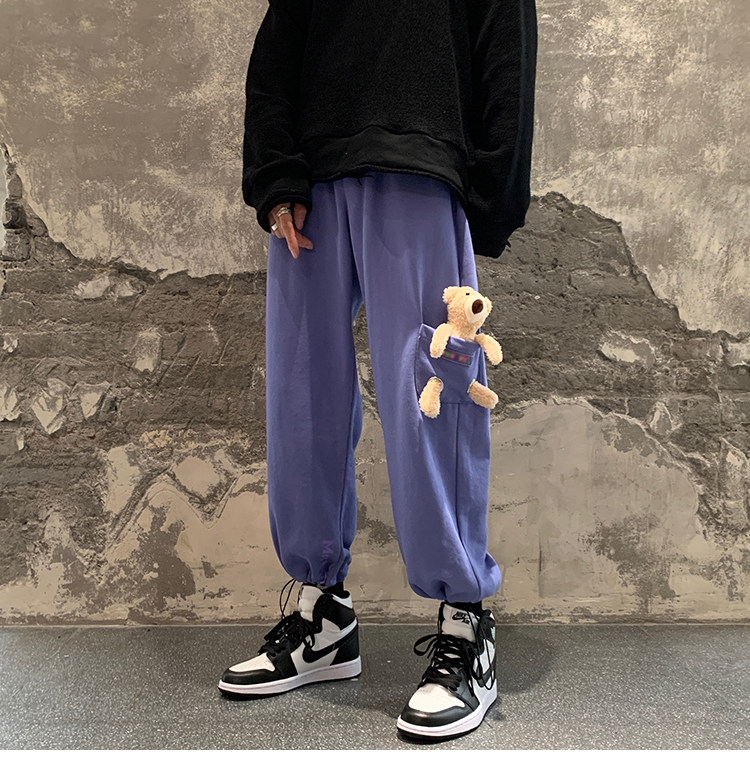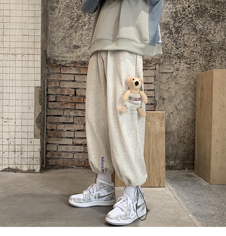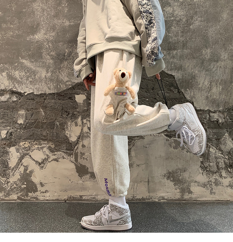 Штаны, зимние утепленные джинсы с начесом в стиле хип-хоп, с медвежатами, на шнурках