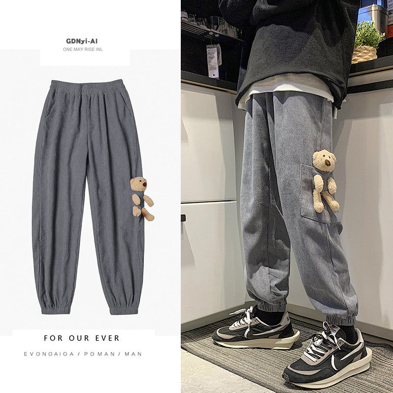 Вельветовые демисезонные брендовые трендовые штаны, с медвежатами, в корейском стиле