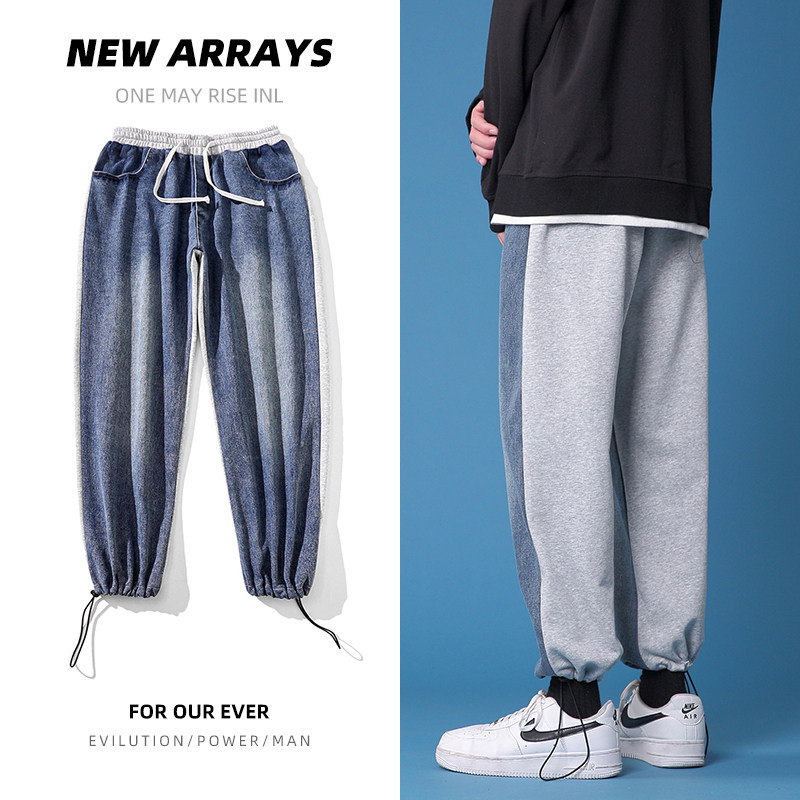 Джинсовые демисезонные трендовые штаны, спортивные брендовые повседневные брюки для отдыха, оверсайз, на шнурках