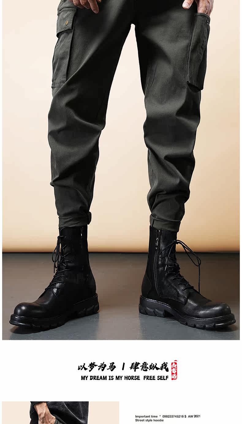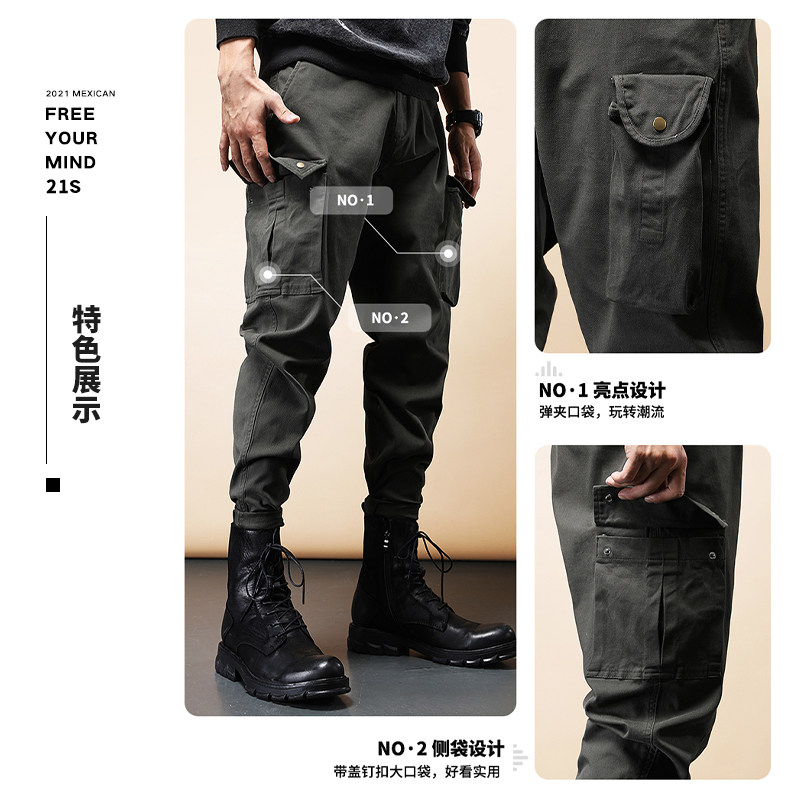 Весенние зеленые тактические штаны, в американском стиле, свободный прямой крой, в корейском стиле