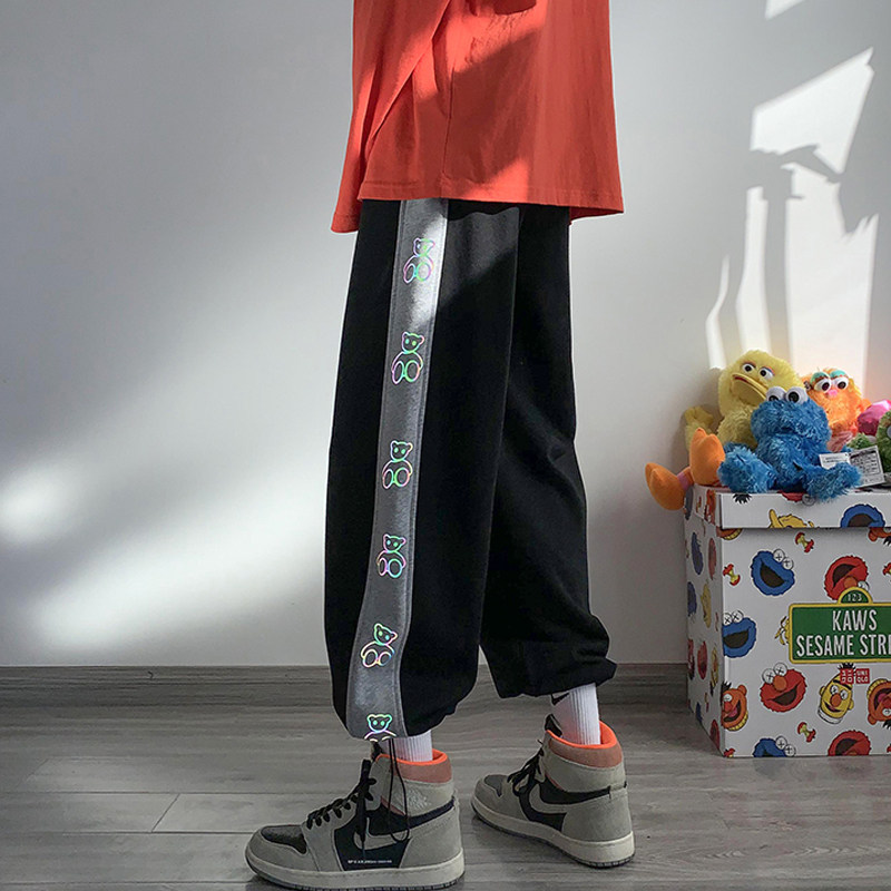 Светоотражающие спортивные брендовые штаны, повседневные брюки, в корейском стиле