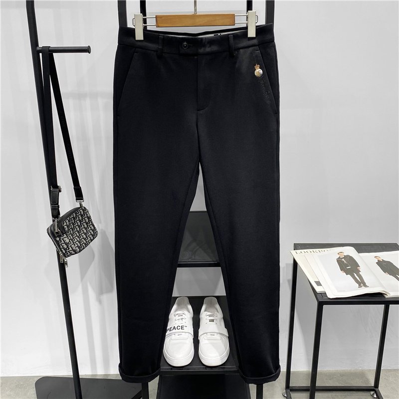 Элитные демисезонные штаны, облегающий крой, свободный прямой крой, с вышивкой, в корейском стиле