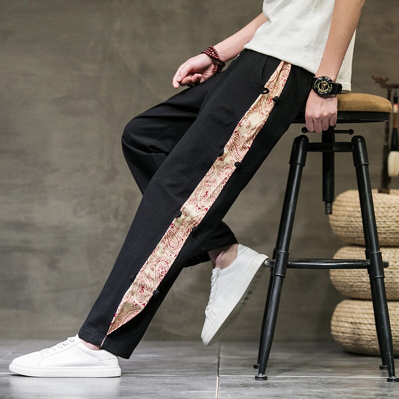 Этнические весенние штаны для отдыха, этнический стиль, из хлопка и льна, оверсайз, большой размер, свободный прямой крой