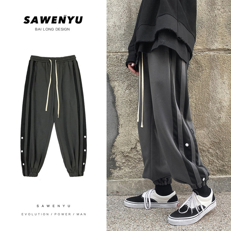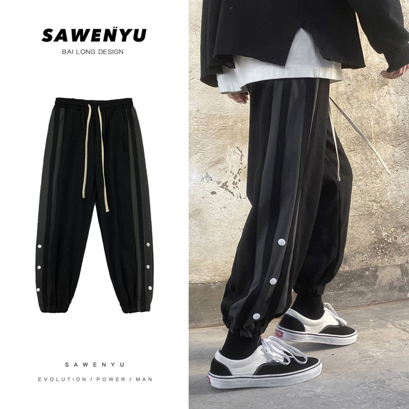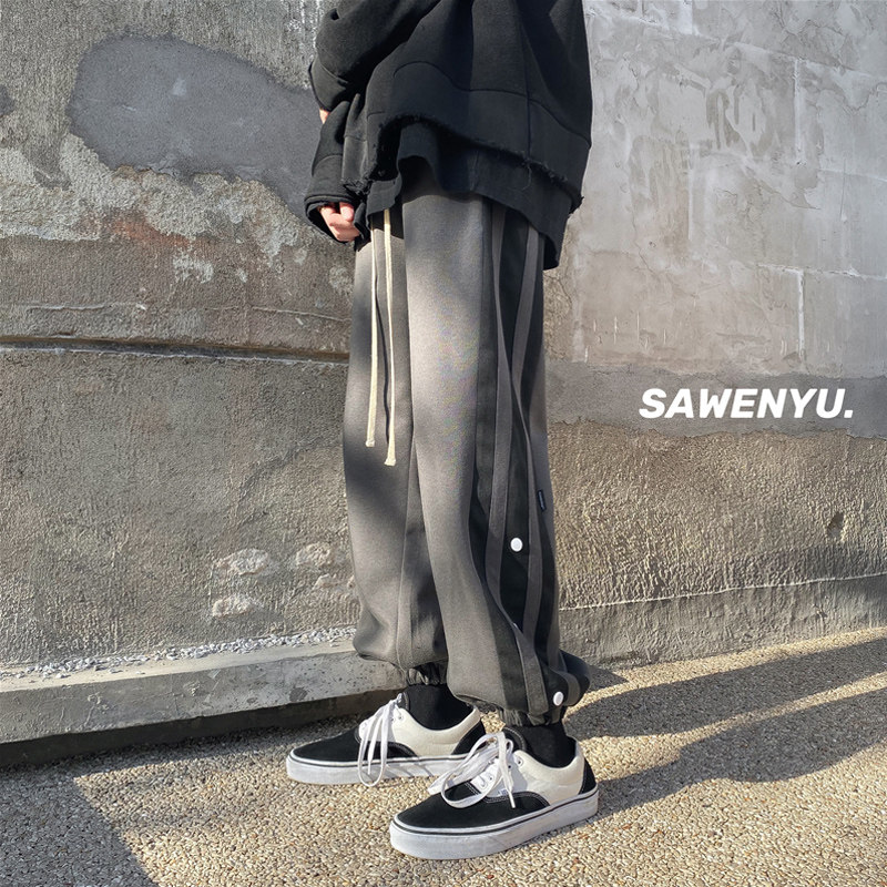 Повседневные брюки, трендовые брендовые штаны, оверсайз, свободный крой, в корейском стиле