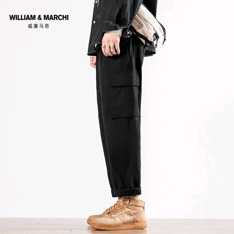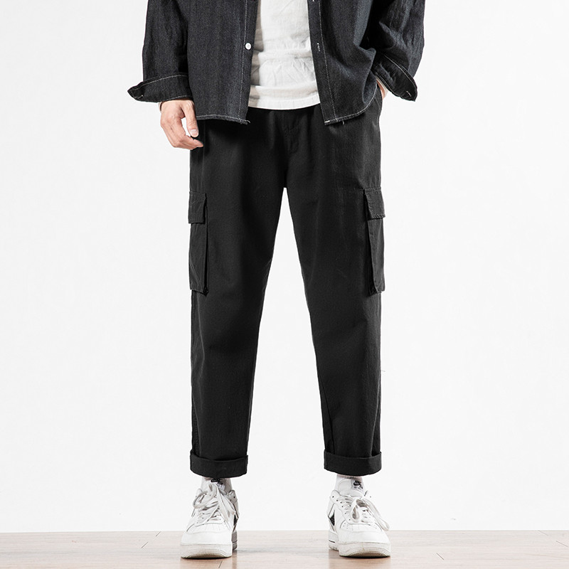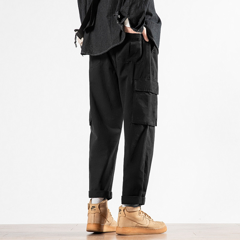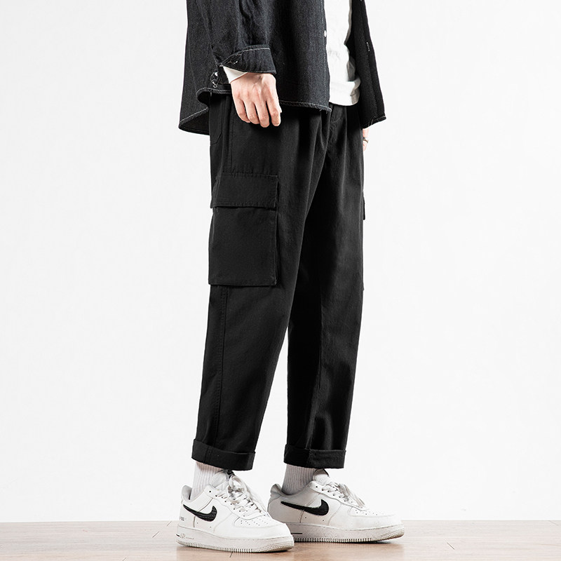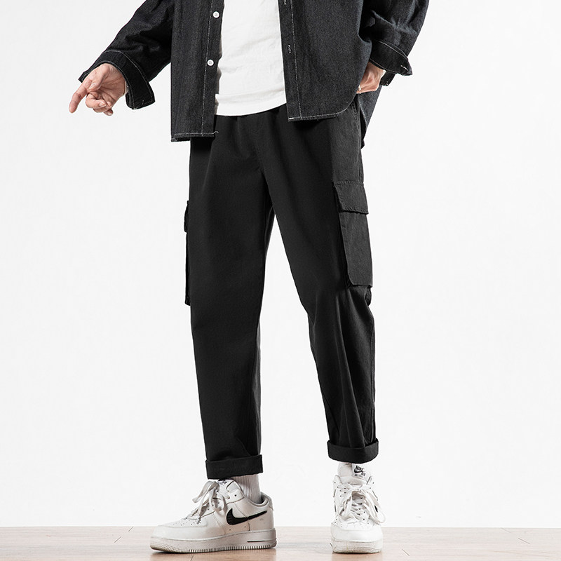 Мужские осенние трендовые штаны, утепленные универсальные черные повседневные брюки для отдыха, свободный прямой крой, в корейском стиле, оверсайз