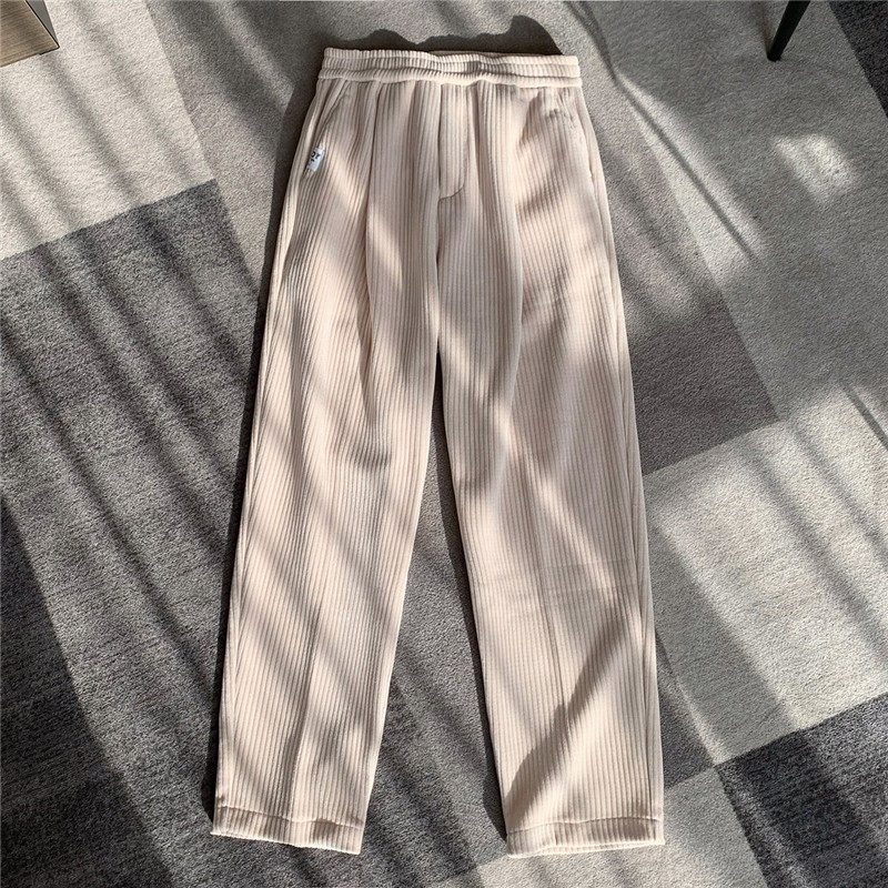 Вельветовые утепленные демисезонные ретро штаны, в американском стиле, изысканный стиль, свободный прямой крой