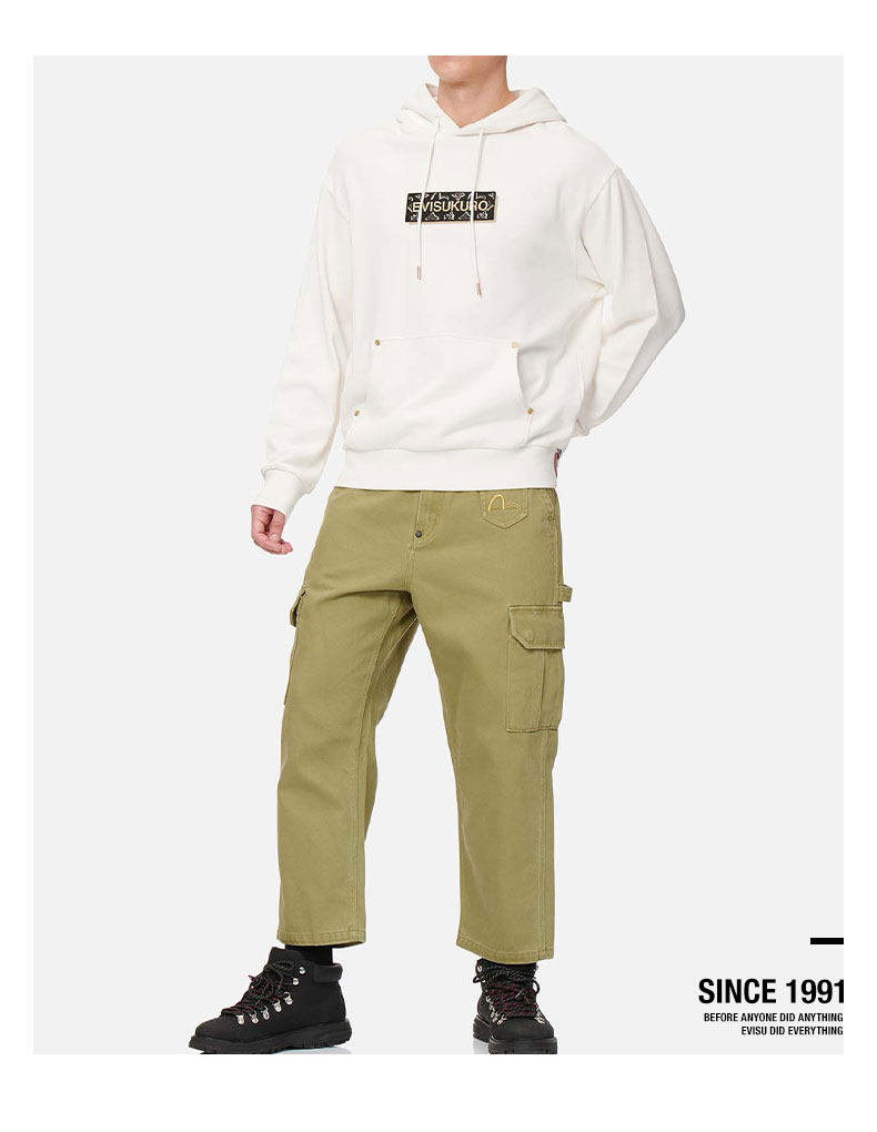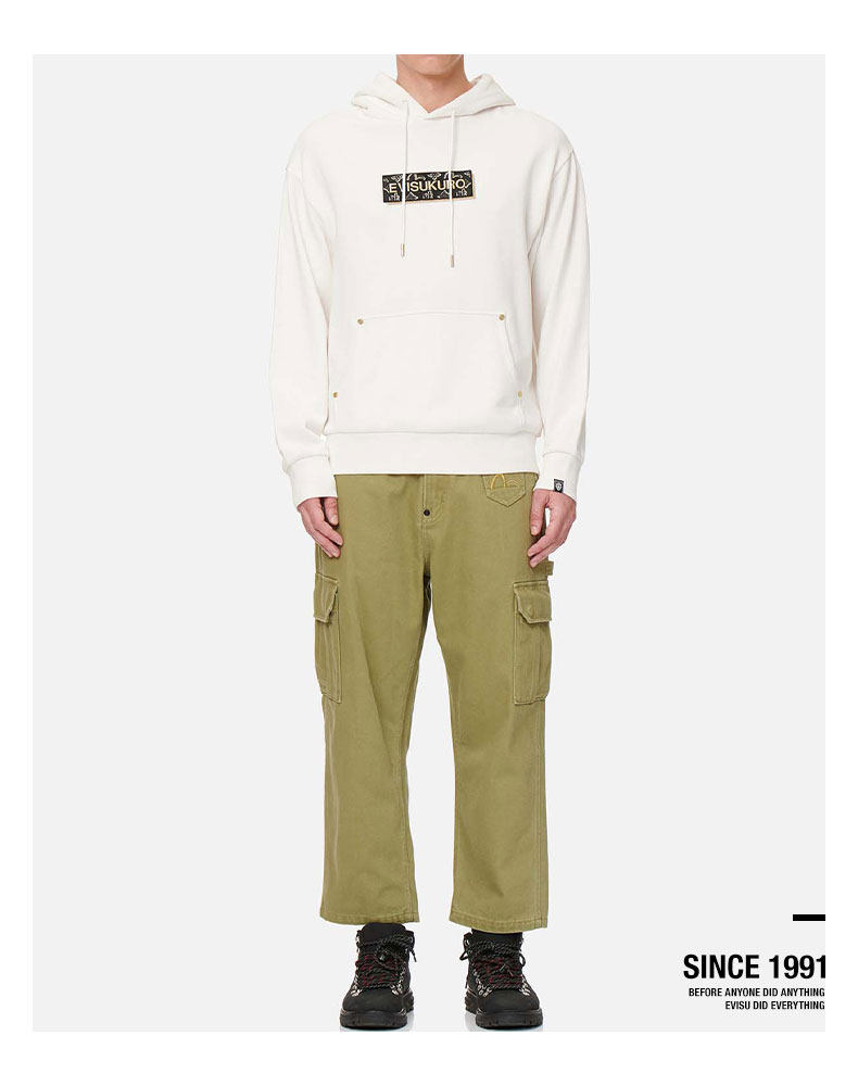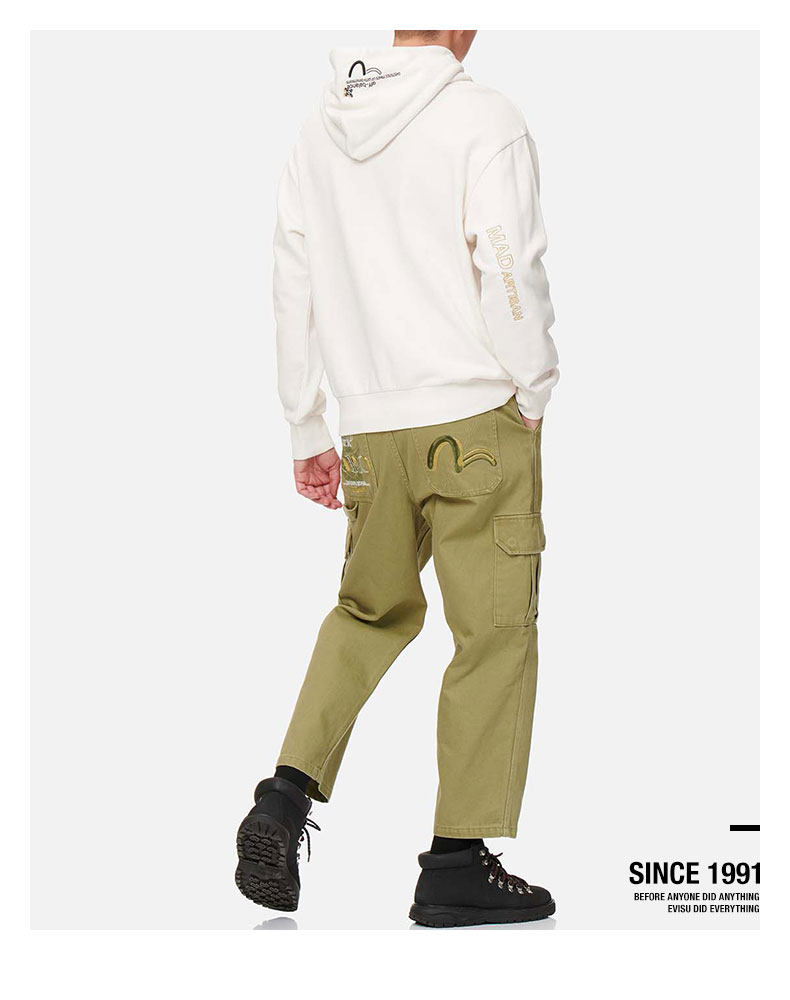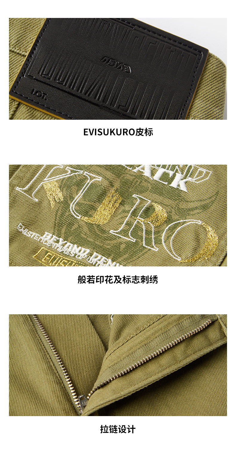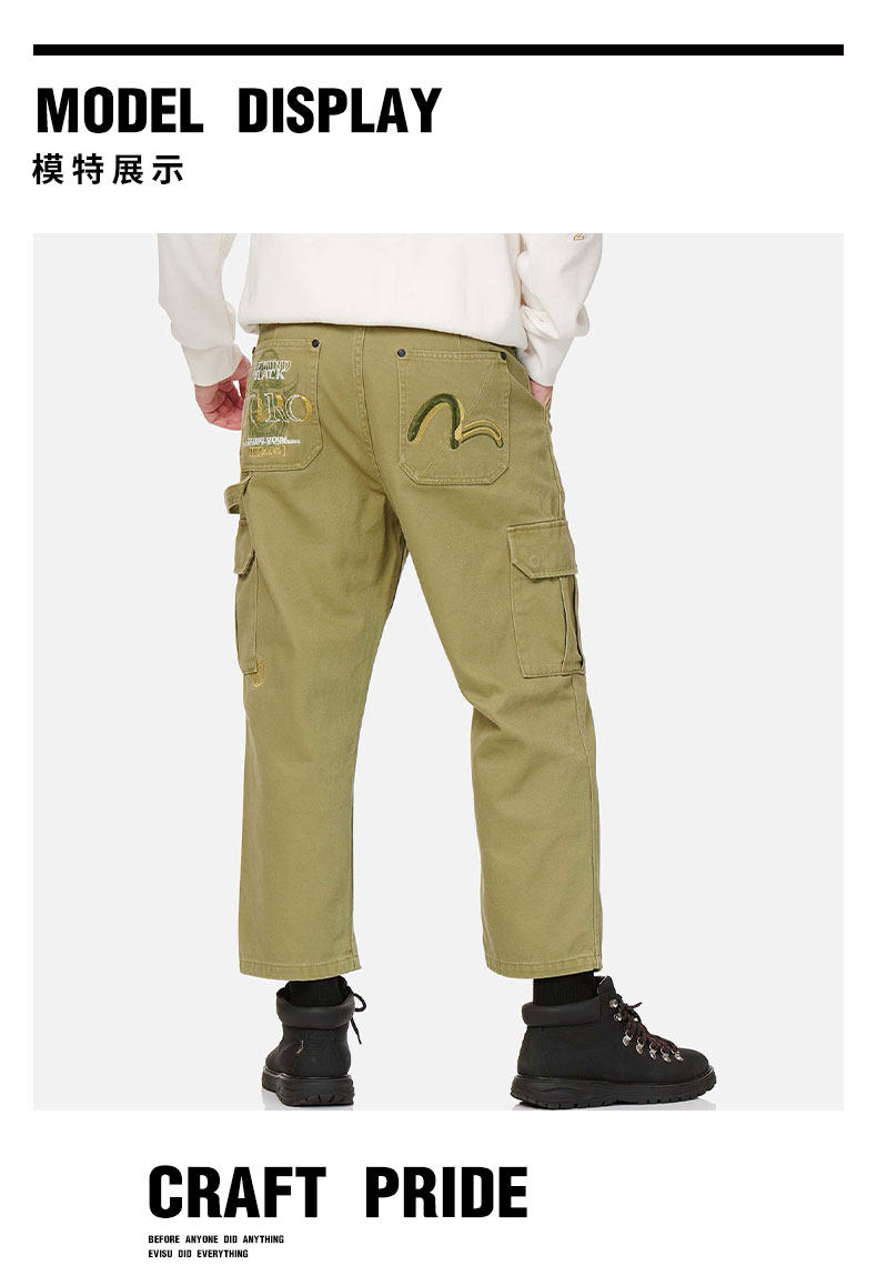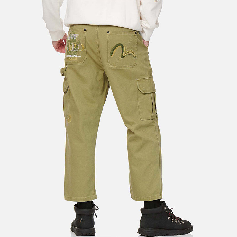 [Тот же стиль, что и Ван Ибо] Мужские свободные брюки с несколькими карманами EVISUKURO с принтом Prajna и вышивкой чайки